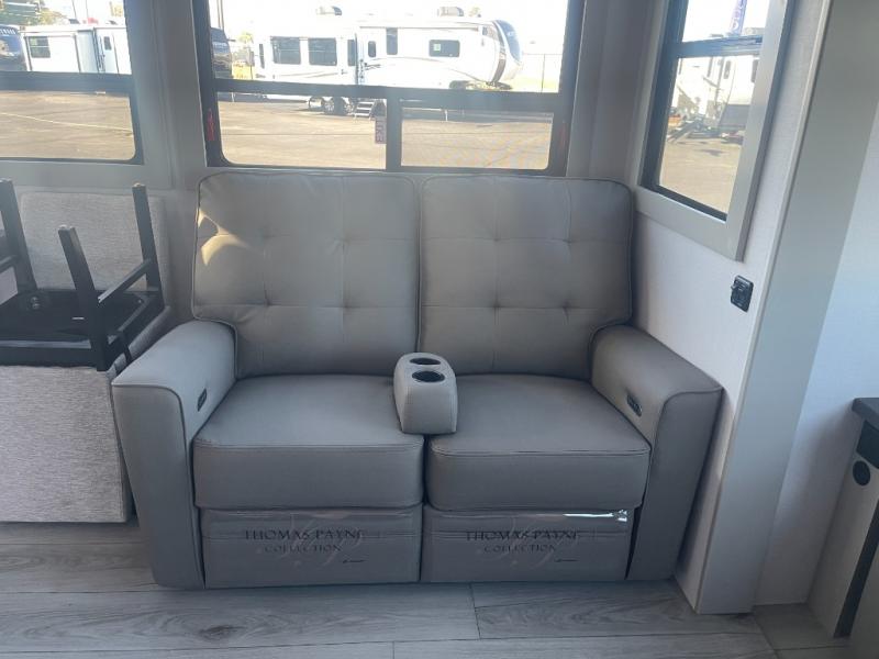 Live the high life with a Keystone Montana High Country fifth wheel! You'll have all the luxury you need with these units. They come with a MaxTurn™ front cap with KeyShield™ automotive-grade paint, a fully walkable roof with Alpha seamless TPO membrane system, and an insulated underbelly with forced hot air and electric tank heaters. The MORryde CRE3000 suspension with wet bolts helps provide a smooth tow, and the Ground Control® four-point electric auto-leveling with hitch memory will make set-up quite easy. The interior is elegantly appointed with the Thomas Payne Collection furniture, hardwood decorative slide-out fascia, Beauflor® vinyl throughout, accent crown molding, and premium solid surface kitchen countertops.