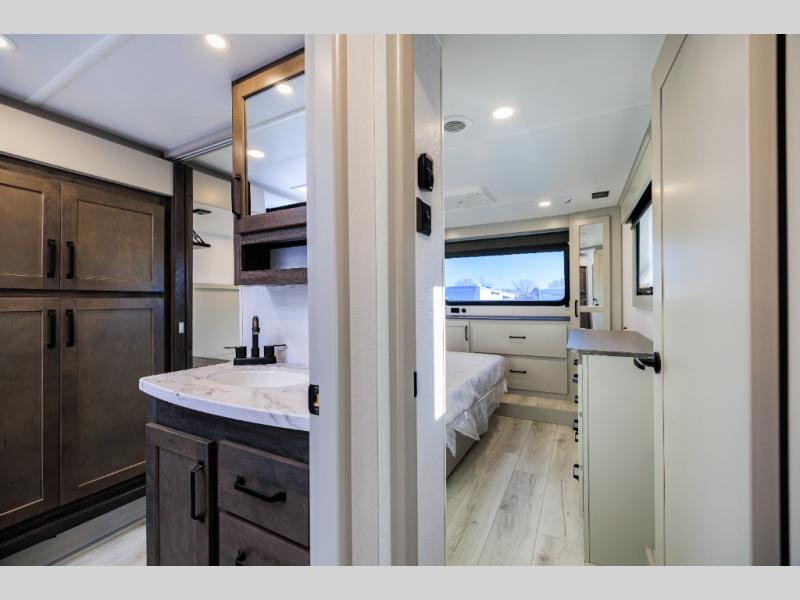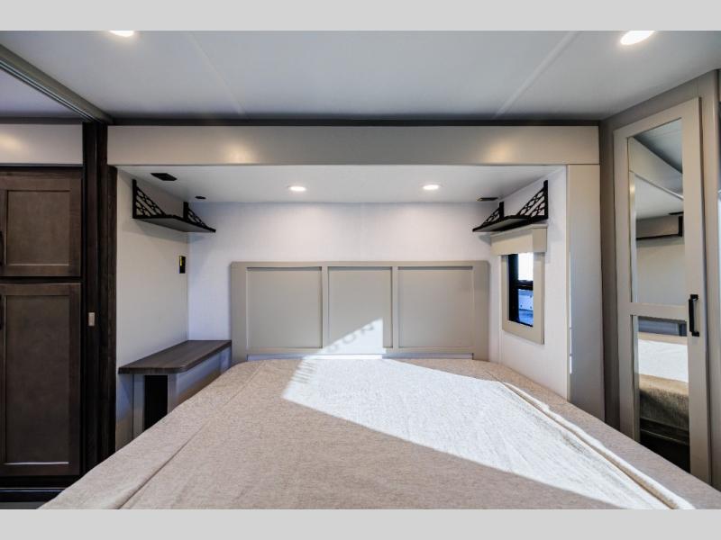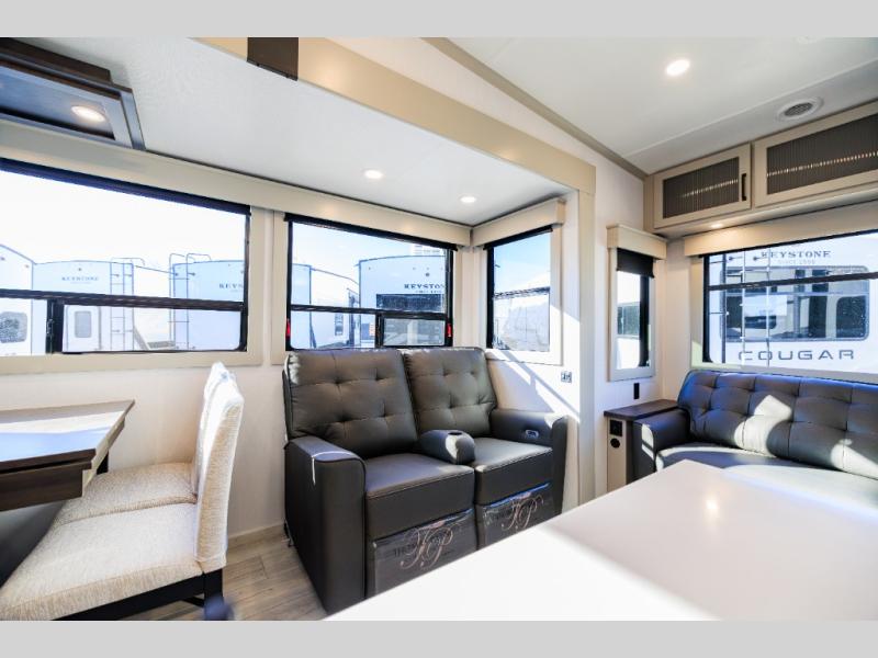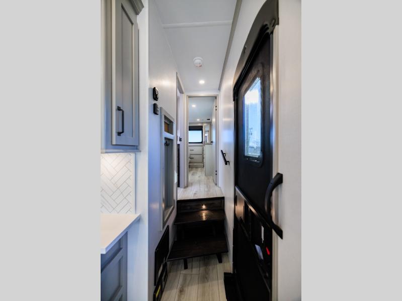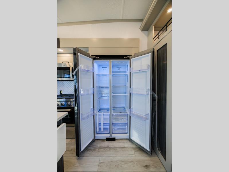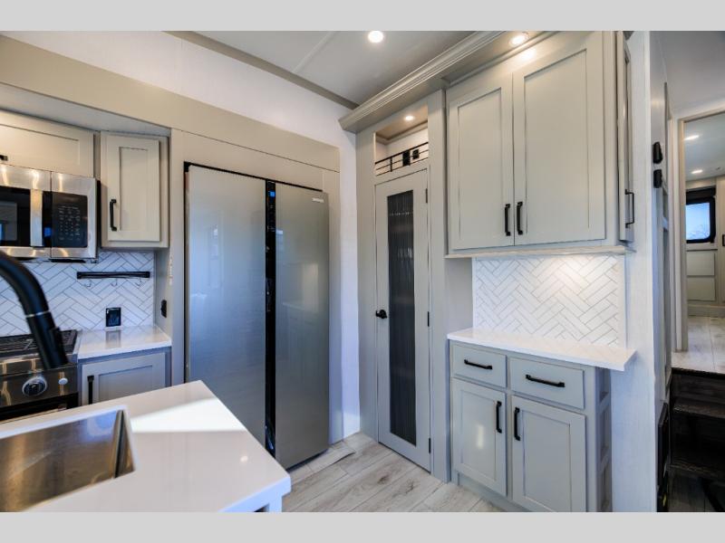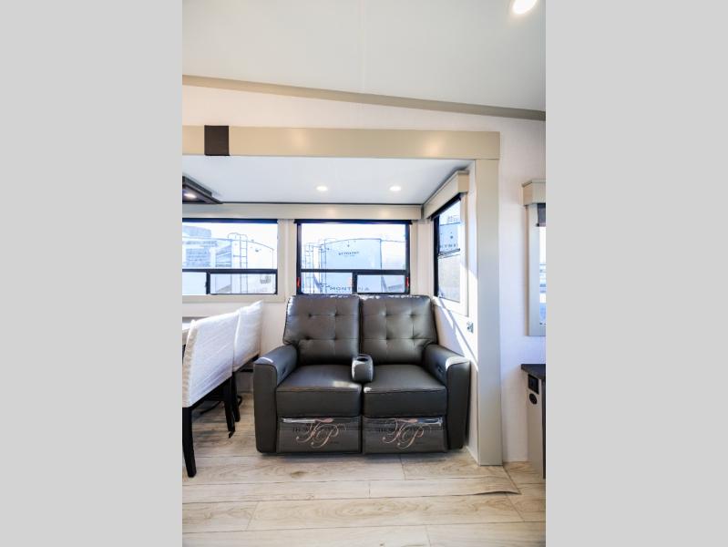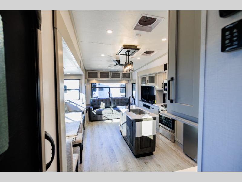 Live the high life with a Keystone Montana High Country fifth wheel! You'll have all the luxury you need with these units. They come with a MaxTurn™ front cap with KeyShield™ automotive-grade paint, a fully walkable roof with Alpha seamless TPO membrane system, and an insulated underbelly with forced hot air and electric tank heaters. The MORryde CRE3000 suspension with wet bolts helps provide a smooth tow, and the Ground Control® four-point electric auto-leveling with hitch memory will make set-up quite easy. The interior is elegantly appointed with the Thomas Payne Collection furniture, hardwood decorative slide-out fascia, Beauflor® vinyl throughout, accent crown molding, and premium solid surface kitchen countertops.