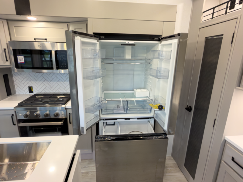 - Kitchen island and residential refrigerator bring home comforts on the road