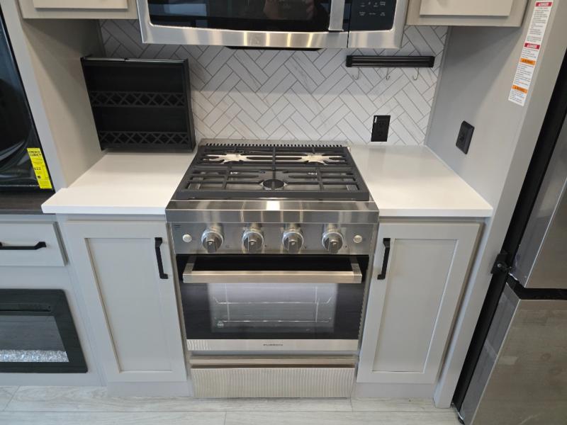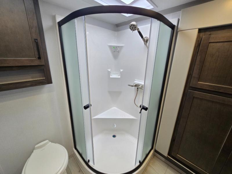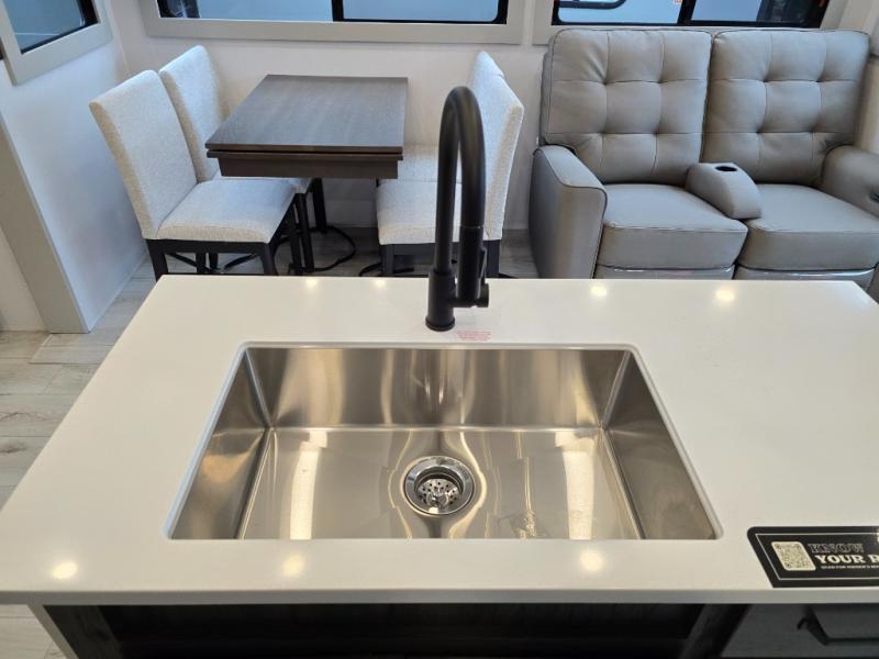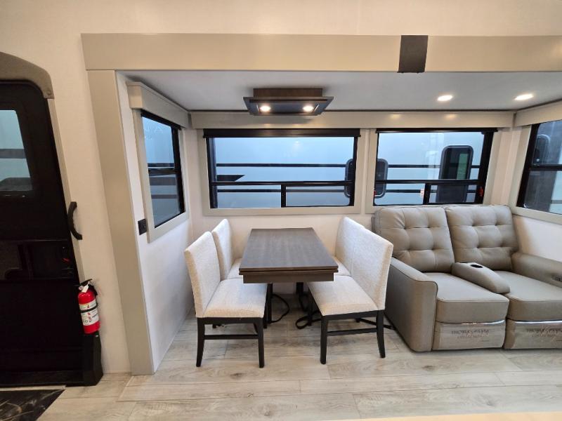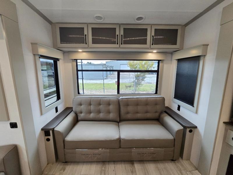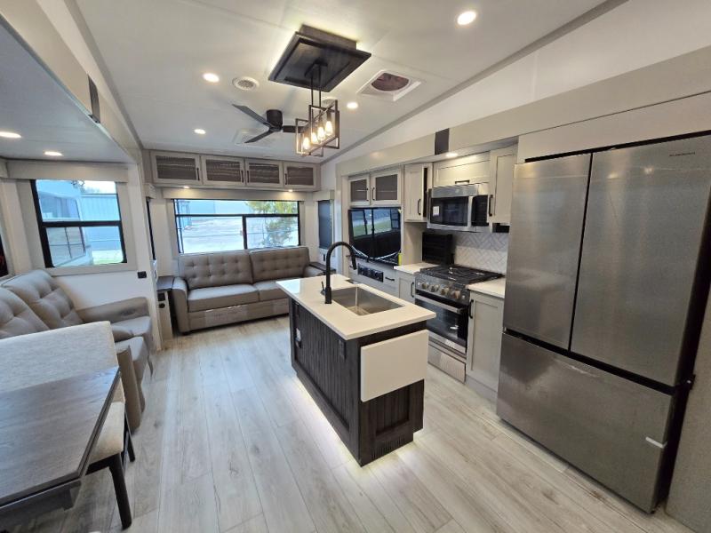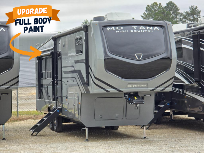Live the high life with a Keystone Montana High Country fifth wheel! You'll have all the luxury you need with these units. They come with a MaxTurn™ front cap with KeyShield™ automotive-grade paint, a fully walkable roof with Alpha seamless TPO membrane system, and an insulated underbelly with forced hot air and electric tank heaters. The MORryde CRE3000 suspension with wet bolts helps provide a smooth tow, and the Ground Control® four-point electric auto-leveling with hitch memory will make set-up quite easy. The interior is elegantly appointed with the Thomas Payne Collection furniture, hardwood decorative slide-out fascia, Beauflor® vinyl throughout, accent crown molding, and premium solid surface kitchen countertops.
