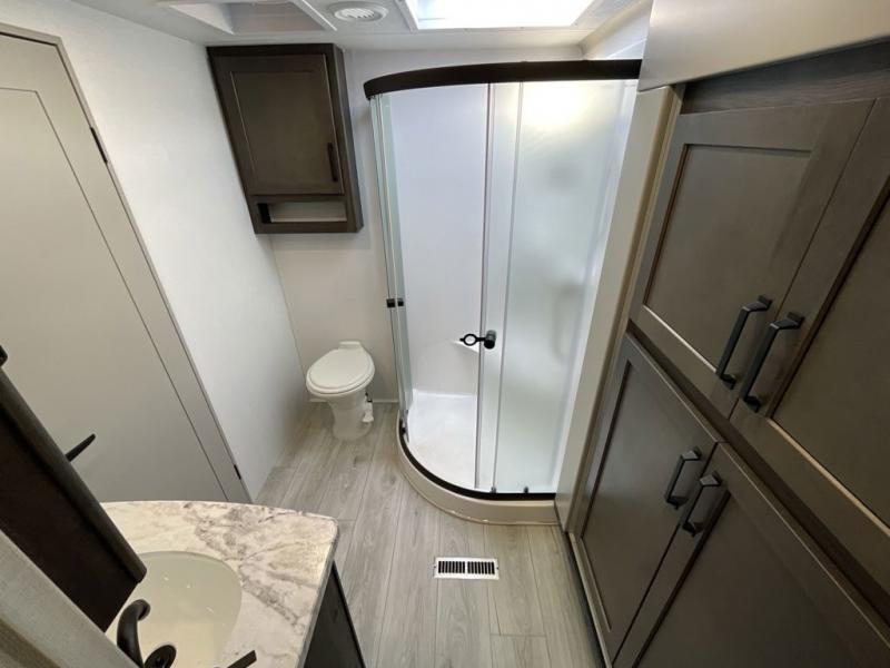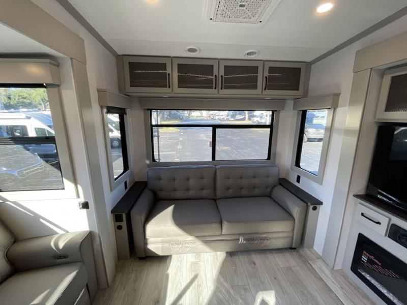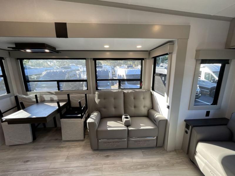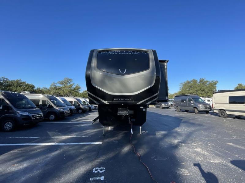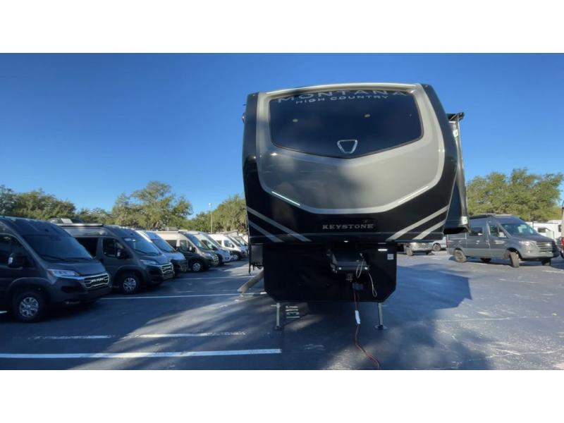 Live the high life with a Keystone Montana High Country fifth wheel! You'll have all the luxury you need with these units. They come with a MaxTurn™ front cap with KeyShield™ automotive-grade paint, a fully walkable roof with Alpha seamless TPO membrane system, and an insulated underbelly with forced hot air and electric tank heaters. The MORryde CRE3000 suspension with wet bolts helps provide a smooth tow, and the Ground Control® four-point electric auto-leveling with hitch memory will make set-up quite easy. The interior is elegantly appointed with the Thomas Payne Collection furniture, hardwood decorative slide-out fascia, Beauflor® vinyl throughout, accent crown molding, and premium solid surface kitchen countertops.