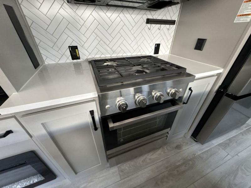 Live the high life with a Keystone Montana High Country fifth wheel! You'll have all the luxury you need with these units. They come with a MaxTurn™ front cap with KeyShield™ automotive-grade paint, a fully walkable roof with Alpha seamless TPO membrane system, and an insulated underbelly with forced hot air and electric tank heaters. The MORryde CRE3000 suspension with wet bolts helps provide a smooth tow, and the Ground Control® four-point electric auto-leveling with hitch memory will make set-up quite easy. The interior is elegantly appointed with the Thomas Payne Collection furniture, hardwood decorative slide-out fascia, Beauflor® vinyl throughout, accent crown molding, and premium solid surface kitchen countertops.