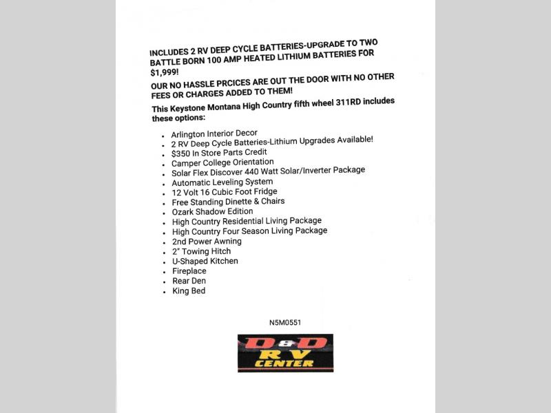 This Keystone Montana High Country fifth wheel 311RD includes these options: