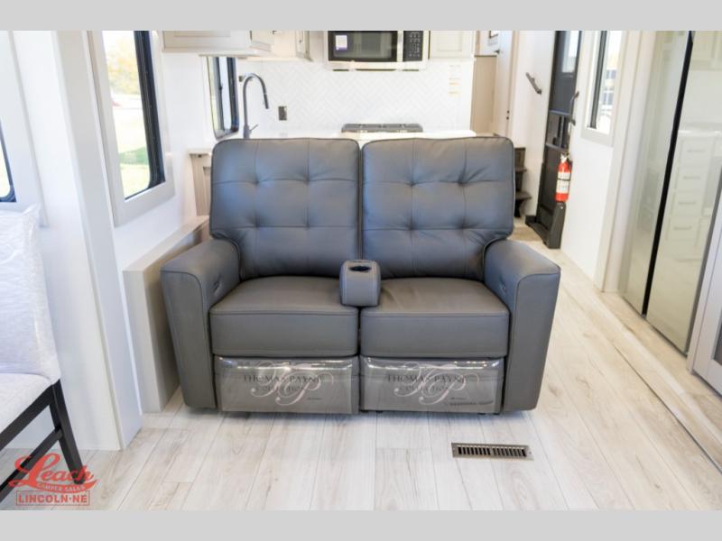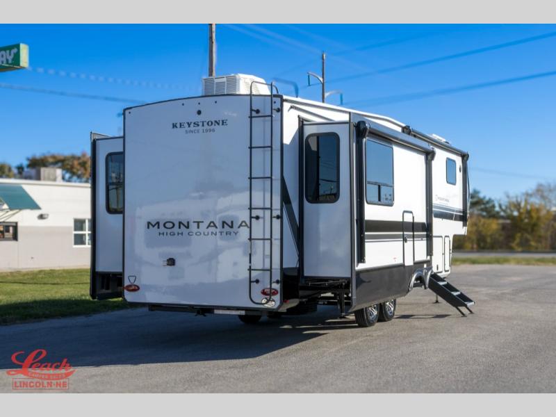 Live the high life with a Keystone Montana High Country fifth wheel! You'll have all the luxury you need with these units. They come with a MaxTurn™ front cap with KeyShield™ automotive-grade paint, a fully walkable roof with Alpha seamless TPO membrane system, and an insulated underbelly with forced hot air and electric tank heaters. The MORryde CRE3000 suspension with wet bolts helps provide a smooth tow, and the Ground Control® four-point electric auto-leveling with hitch memory will make set-up quite easy. The interior is elegantly appointed with the Thomas Payne Collection furniture, hardwood decorative slide-out fascia, Beauflor® vinyl throughout, accent crown molding, and premium solid surface kitchen countertops.