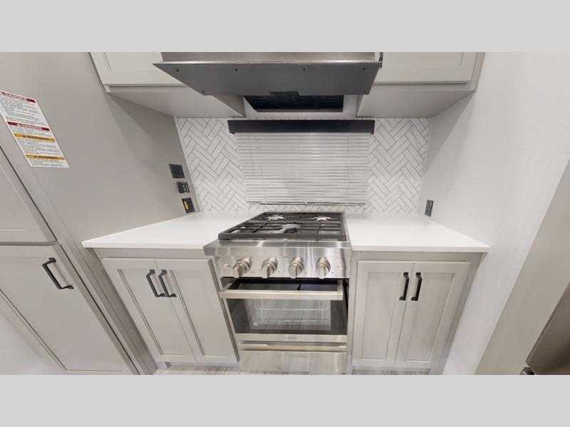 Live the high life with a Keystone Montana High Country fifth wheel! You'll have all the luxury you need with these units. They come with a MaxTurn™ front cap with KeyShield™ automotive-grade paint, a fully walkable roof with Alpha seamless TPO membrane system, and an insulated underbelly with forced hot air and electric tank heaters. The MORryde CRE3000 suspension with wet bolts helps provide a smooth tow, and the Ground Control® four-point electric auto-leveling with hitch memory will make set-up quite easy. The interior is elegantly appointed with the Thomas Payne Collection furniture, hardwood decorative slide-out fascia, Beauflor® vinyl throughout, accent crown molding, and premium solid surface kitchen countertops.