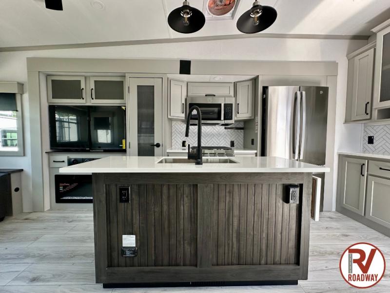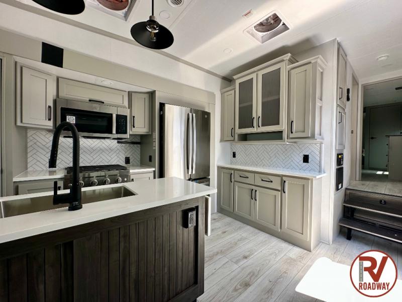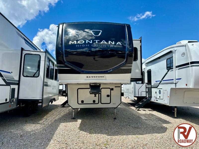 Live the high life with a Keystone Montana High Country fifth wheel! You'll have all the luxury you need with these units. They come with a MaxTurn™ front cap with KeyShield™ automotive-grade paint, a fully walkable roof with Alpha seamless TPO membrane system, and an insulated underbelly with forced hot air and electric tank heaters. The MORryde CRE3000 suspension with wet bolts helps provide a smooth tow, and the Ground Control® four-point electric auto-leveling with hitch memory will make set-up quite easy. The interior is elegantly appointed with the Thomas Payne Collection furniture, hardwood decorative slide-out fascia, Beauflor® vinyl throughout, accent crown molding, and premium solid surface kitchen countertops.