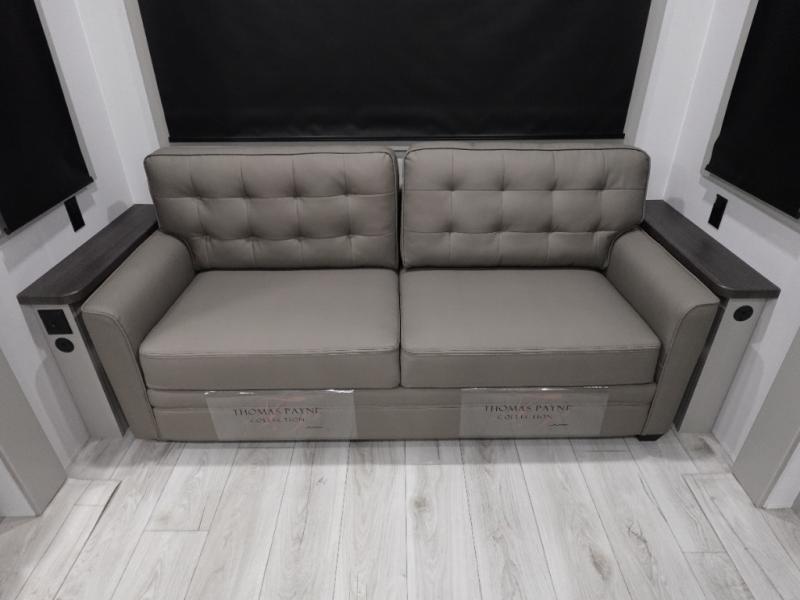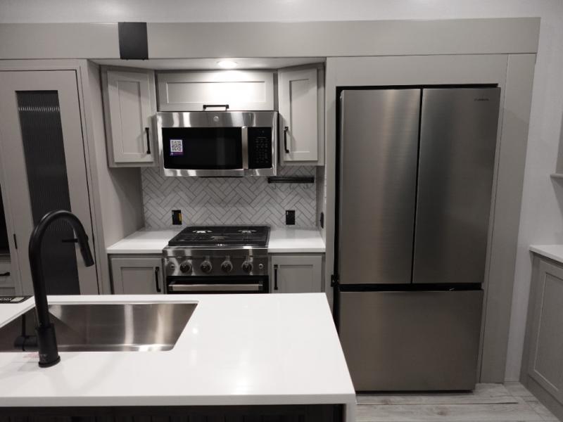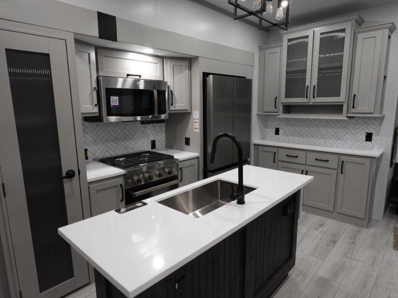 Live the high life with a Keystone Montana High Country fifth wheel! You'll have all the luxury you need with these units. They come with a MaxTurn™ front cap with KeyShield™ automotive-grade paint, a fully walkable roof with Alpha seamless TPO membrane system, and an insulated underbelly with forced hot air and electric tank heaters. The MORryde CRE3000 suspension with wet bolts helps provide a smooth tow, and the Ground Control® four-point electric auto-leveling with hitch memory will make set-up quite easy. The interior is elegantly appointed with the Thomas Payne Collection furniture, hardwood decorative slide-out fascia, Beauflor® vinyl throughout, accent crown molding, and premium solid surface kitchen countertops.
