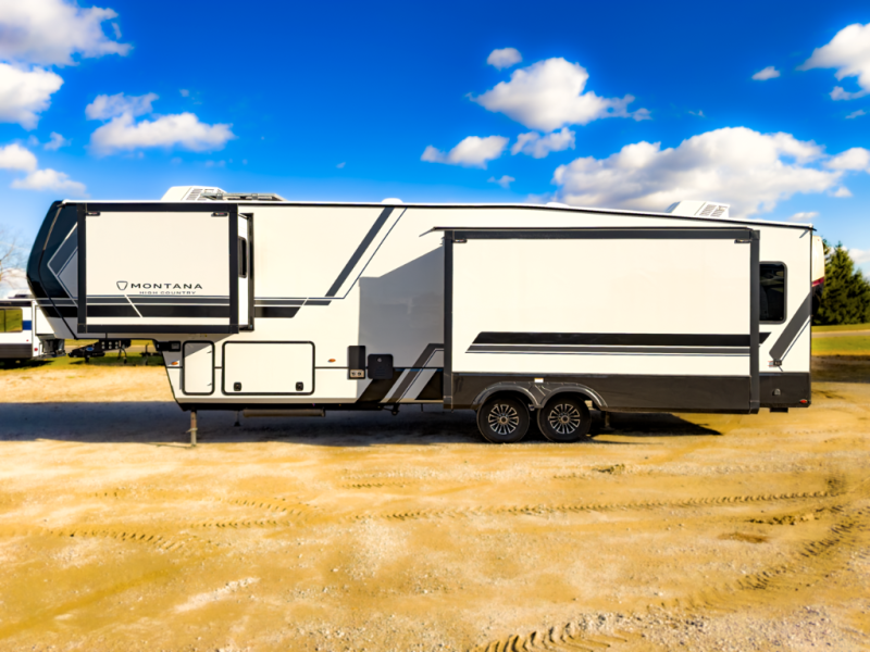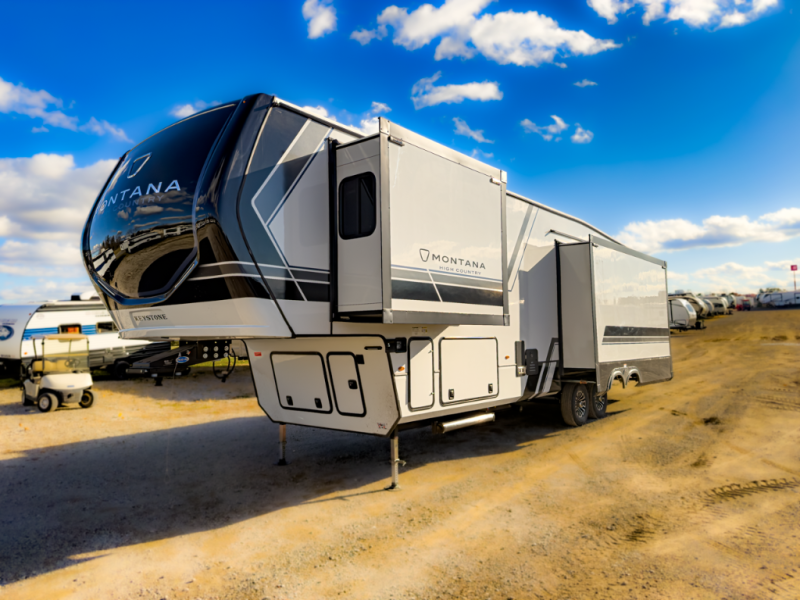 Montana High Country 331RL at Price Right RV. Rear-living luxury with king bed, island kitchen, storage, and all-season features for Michigan camping.