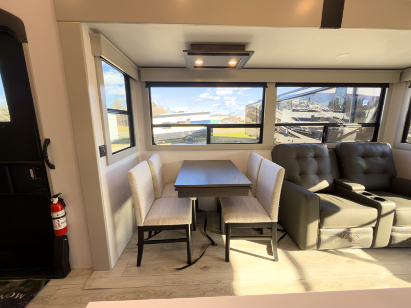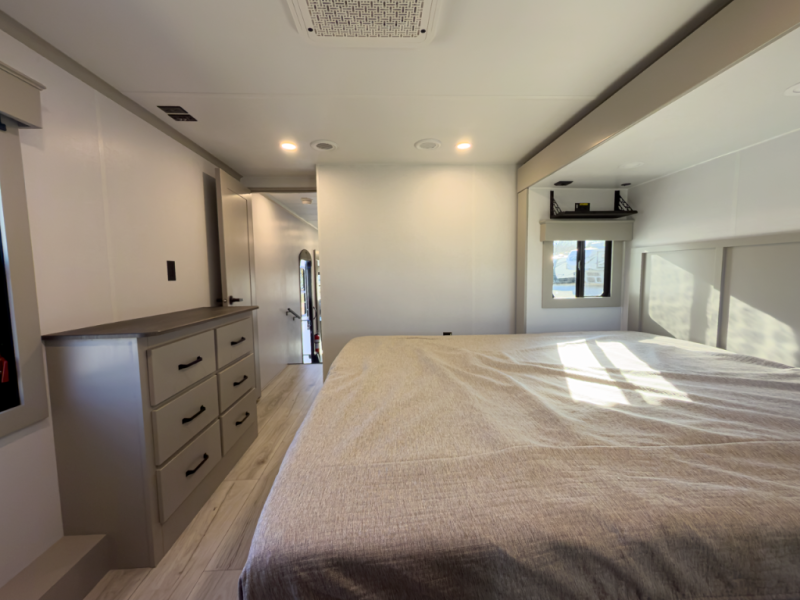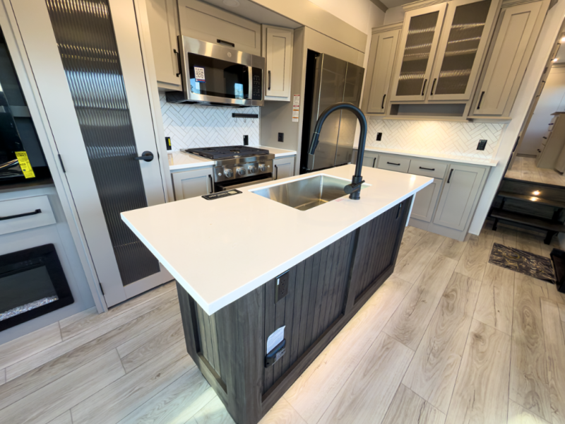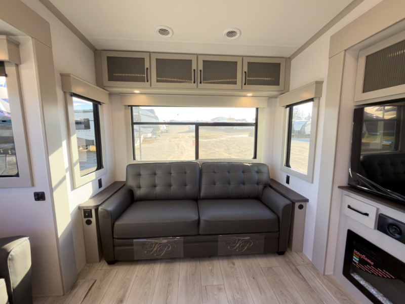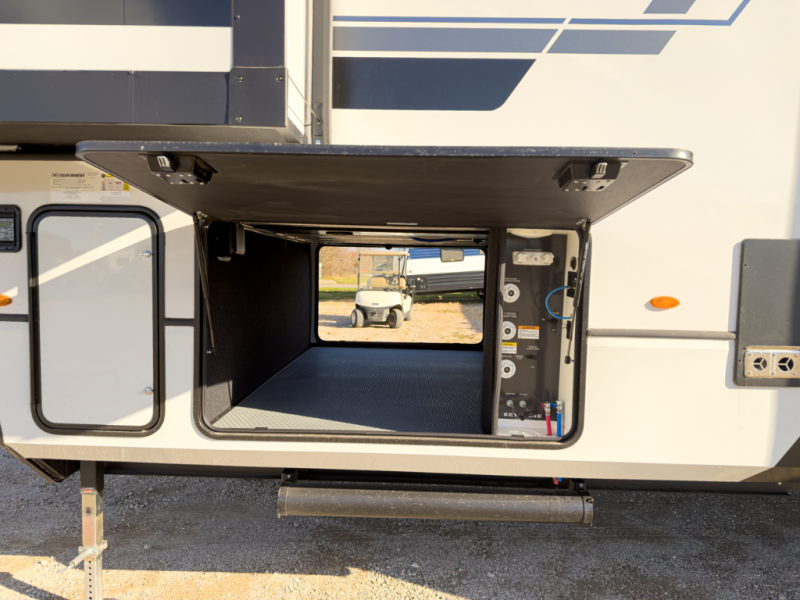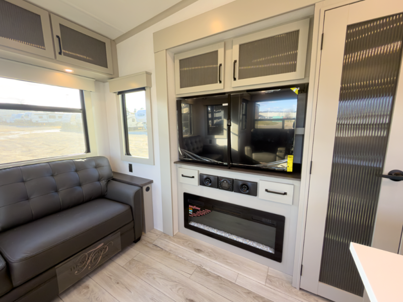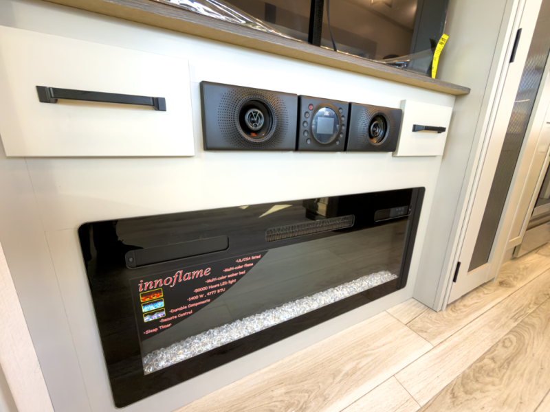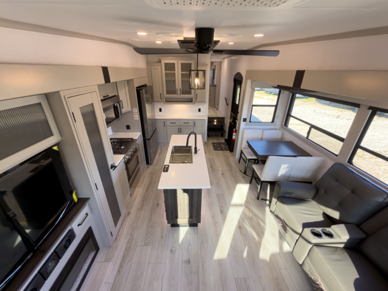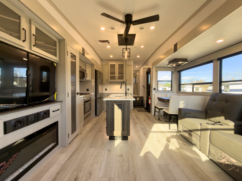 - Features: Dual power awnings, fireplace, washer/dryer prep, 50" Smart TV, 15K BTU A/C