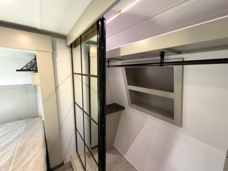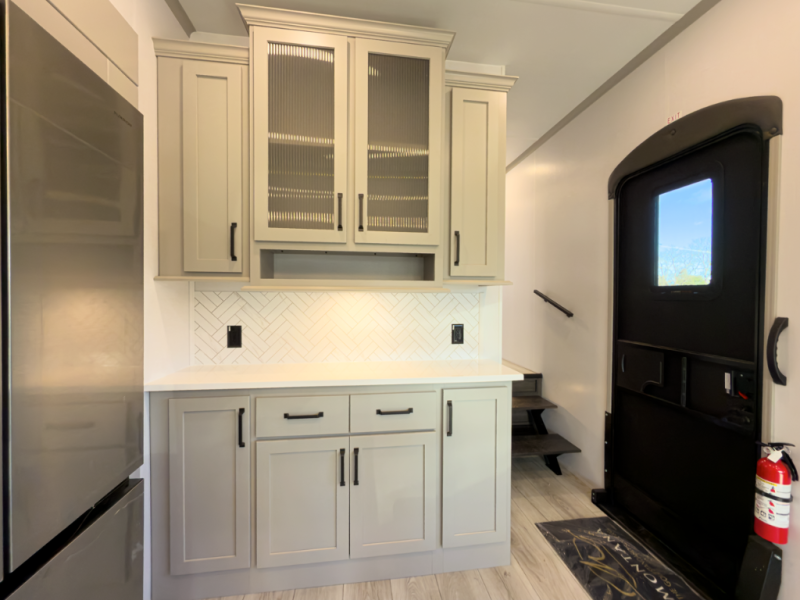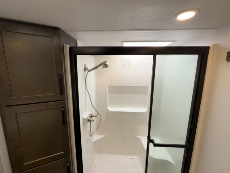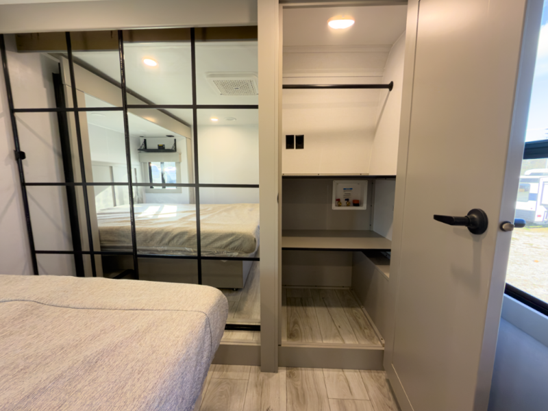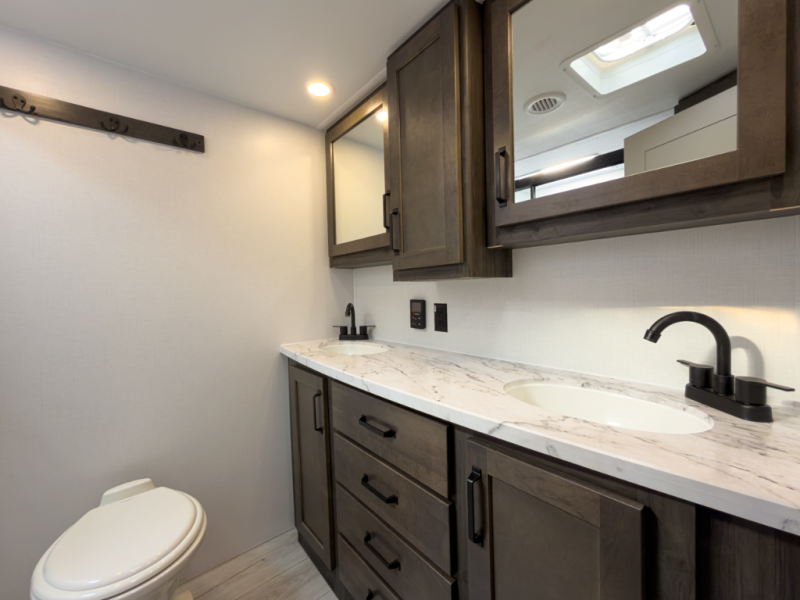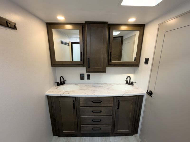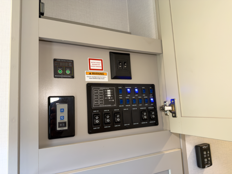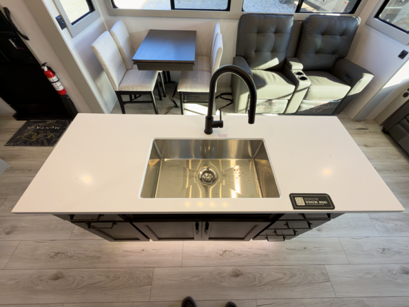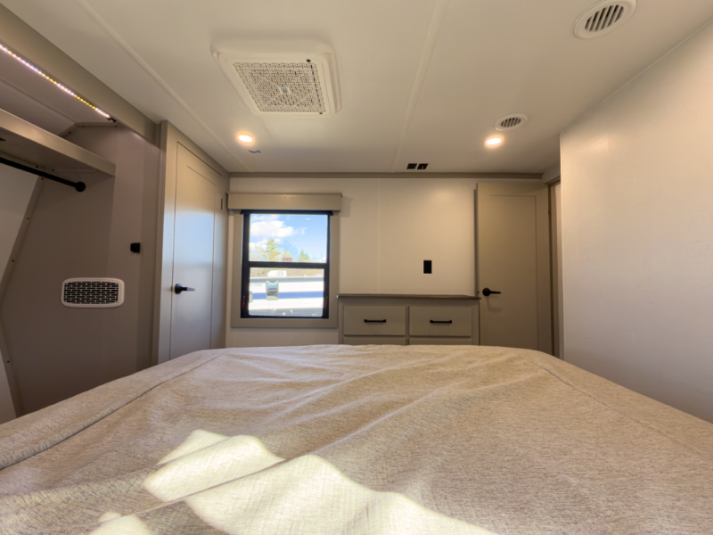 - Features: Dual power awnings, fireplace, washer/dryer prep, 50" Smart TV, 15K BTU A/C