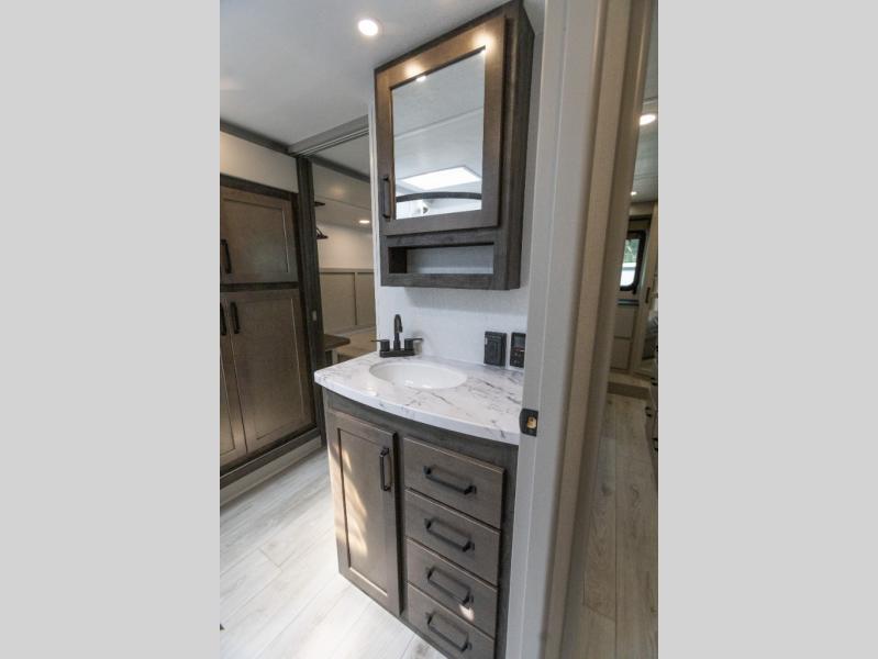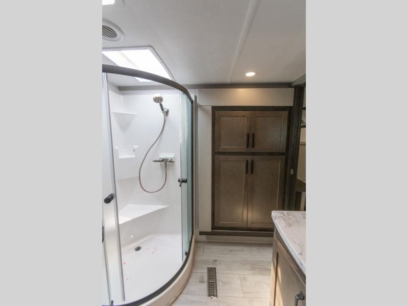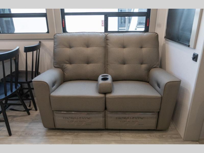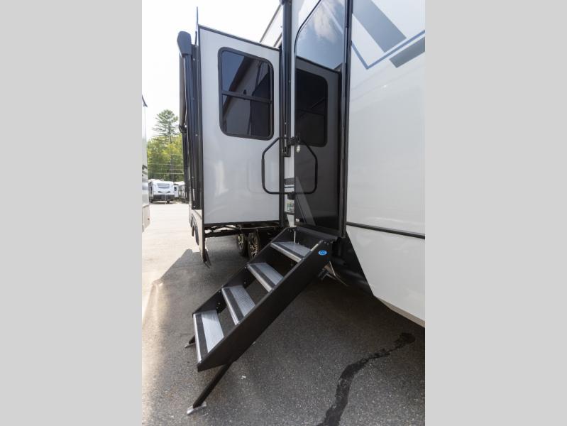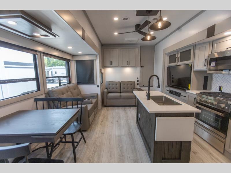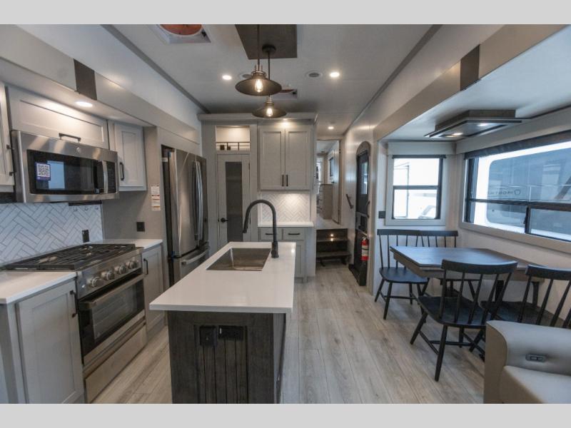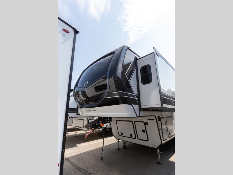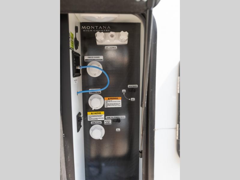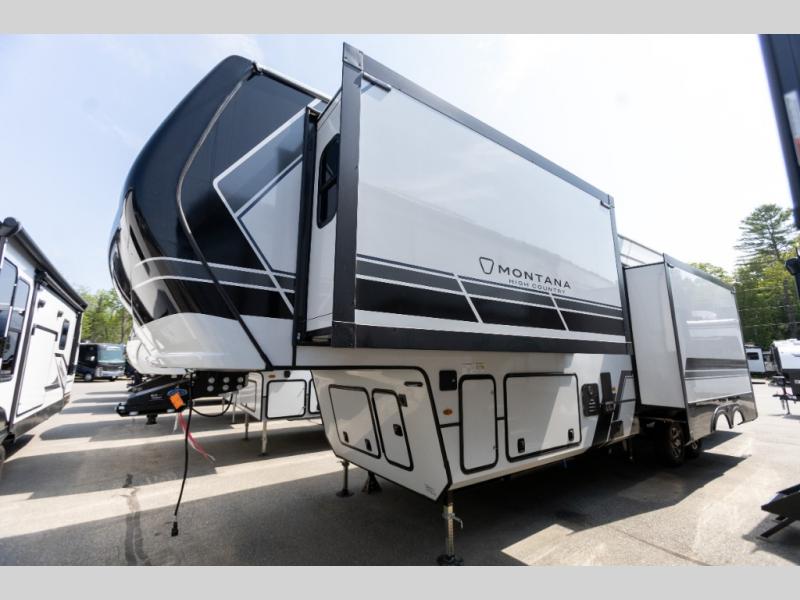 Live the high life with a Keystone Montana High Country fifth wheel! You'll have all the luxury you need with these units. They come with a MaxTurn™ front cap with KeyShield™ automotive-grade paint, a fully walkable roof with Alpha seamless TPO membrane system, and an insulated underbelly with forced hot air and electric tank heaters. The MORryde CRE3000 suspension with wet bolts helps provide a smooth tow, and the Ground Control® four-point electric auto-leveling with hitch memory will make set-up quite easy. The interior is elegantly appointed with the Thomas Payne Collection furniture, hardwood decorative slide-out fascia, Beauflor® vinyl throughout, accent crown molding, and premium solid surface kitchen countertops.