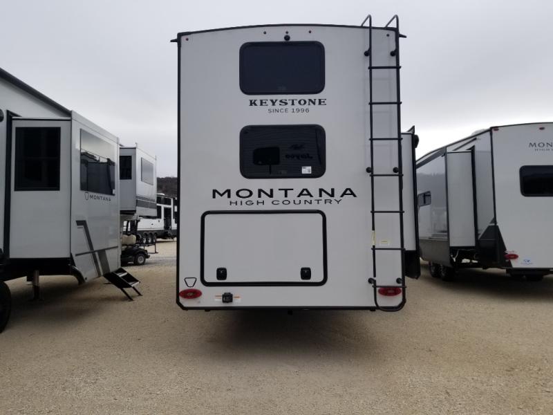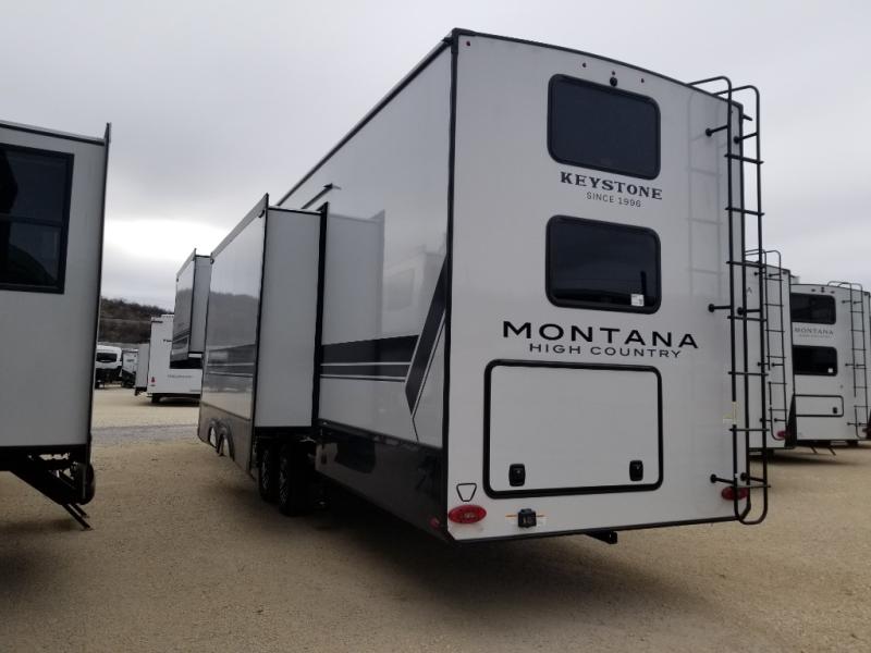 Live the high life with a Keystone Montana High Country fifth wheel! You'll have all the luxury you need with these units. They come with a MaxTurn™ front cap with KeyShield™ automotive-grade paint, a fully walkable roof with Alpha seamless TPO membrane system, and an insulated underbelly with forced hot air and electric tank heaters. The MORryde CRE3000 suspension with wet bolts helps provide a smooth tow, and the Ground Control® four-point electric auto-leveling with hitch memory will make set-up quite easy. The interior is elegantly appointed with the Thomas Payne Collection furniture, hardwood decorative slide-out fascia, Beauflor® vinyl throughout, accent crown molding, and premium solid surface kitchen countertops.