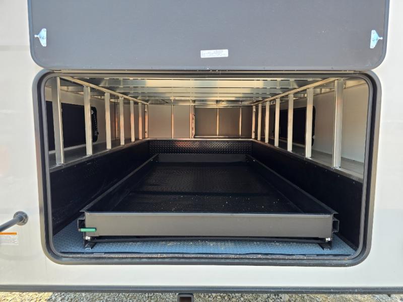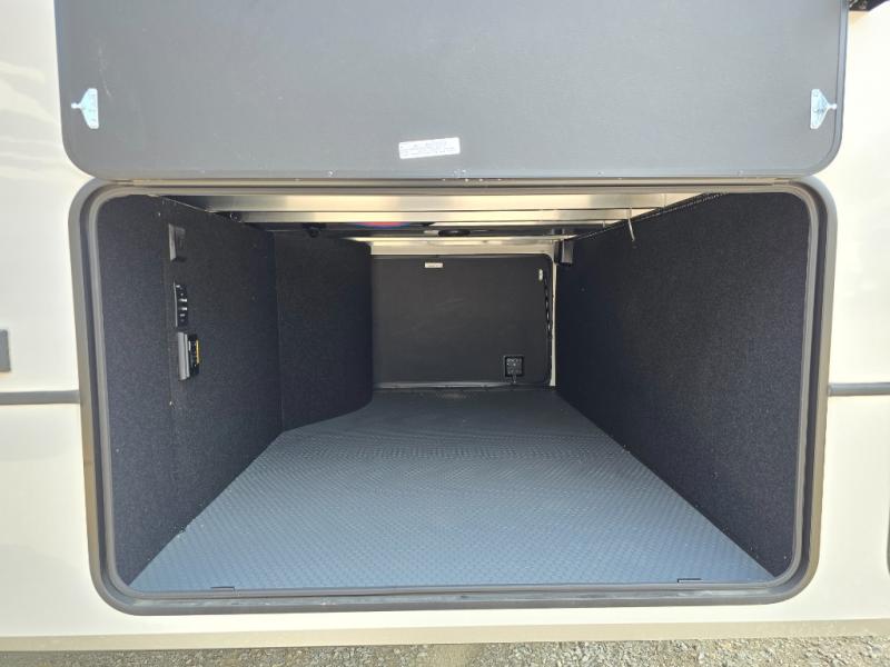 You'll be able to love this Montana High Country fifth wheel for years and years and years! The separated living room in the back feels just like your living room at home with its power theater seating, two hide-a-bed sofas, fireplace, and 50" LED Smart TV. The kitchen is also very residential with its three-burner range with glass top, residential microwave, residential refrigerator, pantry, and coffee station. When you enter this unit, there is a coat closet for you to place your boots and hats in, and for more clothing storage, just use the under-bed storage up in the private bedroom.