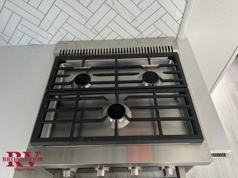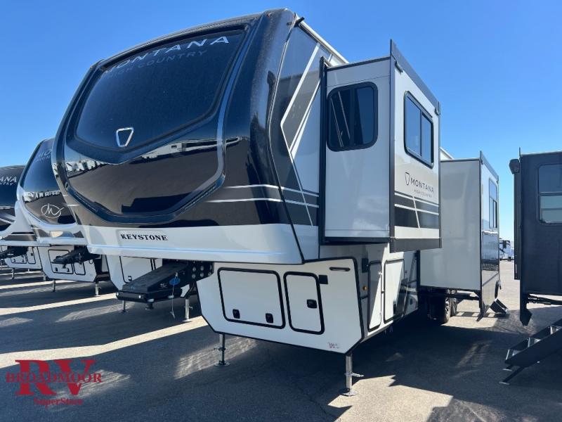 Live the high life with a Keystone Montana High Country fifth wheel! You'll have all the luxury you need with these units. They come with a MaxTurn™ front cap with KeyShield™ automotive-grade paint, a fully walkable roof with Alpha seamless TPO membrane system, and an insulated underbelly with forced hot air and electric tank heaters. The MORryde CRE3000 suspension with wet bolts helps provide a smooth tow, and the Ground Control® four-point electric auto-leveling with hitch memory will make set-up quite easy. The interior is elegantly appointed with the Thomas Payne Collection furniture, hardwood decorative slide-out fascia, Beauflor® vinyl throughout, accent crown molding, and premium solid surface kitchen countertops.
