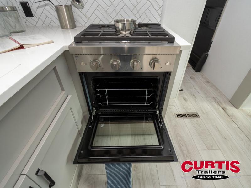 Live the high life with a Keystone Montana High Country fifth wheel! You'll have all the luxury you need with these units. They come with a MaxTurn™ front cap with KeyShield™ automotive-grade paint, a fully walkable roof with Alpha seamless TPO membrane system, and an insulated underbelly with forced hot air and electric tank heaters. The MORryde CRE3000 suspension with wet bolts helps provide a smooth tow, and the Ground Control® four-point electric auto-leveling with hitch memory will make set-up quite easy. The interior is elegantly appointed with the Thomas Payne Collection furniture, hardwood decorative slide-out fascia, Beauflor® vinyl throughout, accent crown molding, and premium solid surface kitchen countertops.
