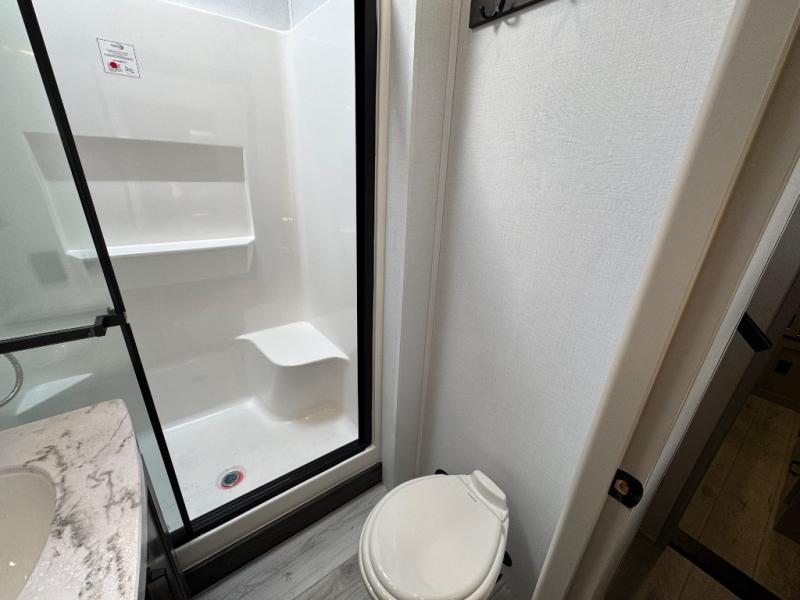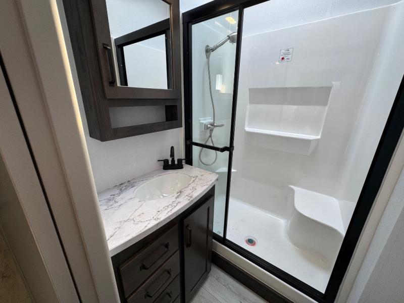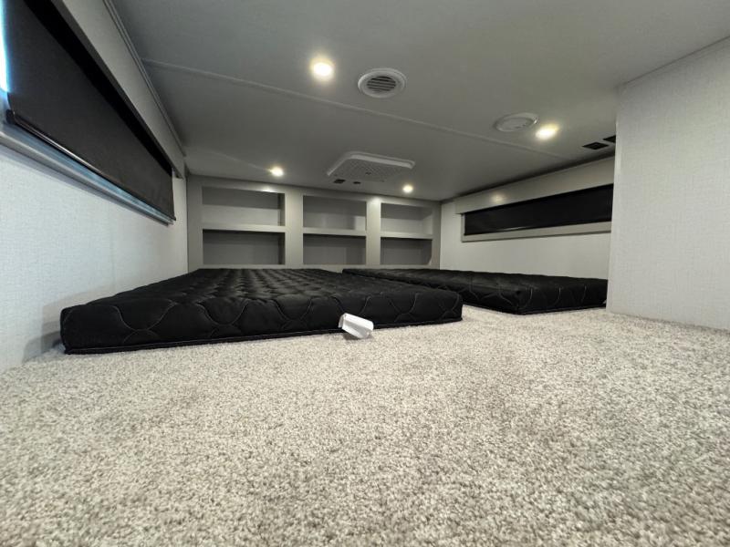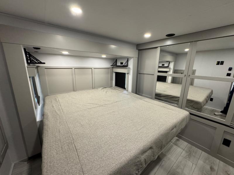 Include all of your favorite people on your next adventure in this Montana High Country fifth wheel! Not only is there a rear private bedroom with a king-size bed for you, but there is also a loft above with stairs that take you to the bunk mats. Now your kids will have their own space too. You can even host a few other travelers up front in the separate living room on the two hide-a-bed sofas. This area will be perfect for cozy sleeping because of the fireplace, and you can even watch a movie as you drift off to sleep because of the 50" LED TV too. The full bathroom has a 48" x 30" shower with seat, and the kitchen has a breakfast bar that you can sit at to eat your cereal each morning