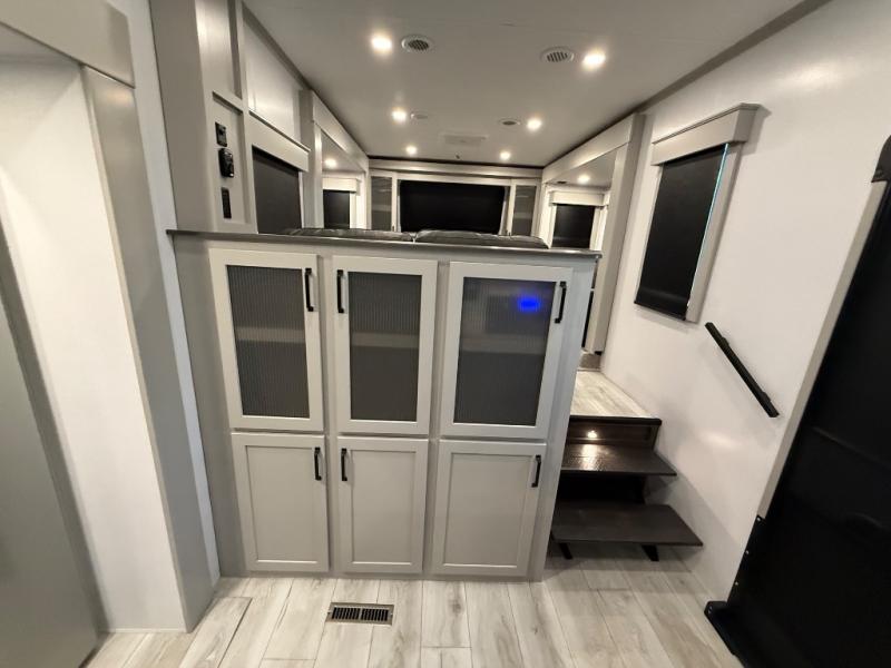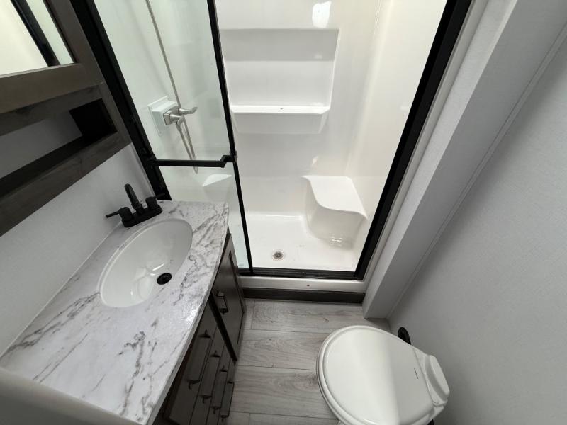 Include all of your favorite people on your next adventure in this Montana High Country fifth wheel! Not only is there a rear private bedroom with a king-size bed for you, but there is also a loft above with stairs that take you to the bunk mats. Now your kids will have their own space too. You can even host a few other travelers up front in the separate living room on the two hide-a-bed sofas. This area will be perfect for cozy sleeping because of the fireplace, and you can even watch a movie as you drift off to sleep because of the 50" LED TV too. The full bathroom has a 48" x 30" shower with seat, and the kitchen has a breakfast bar that you can sit at to eat your cereal each morning