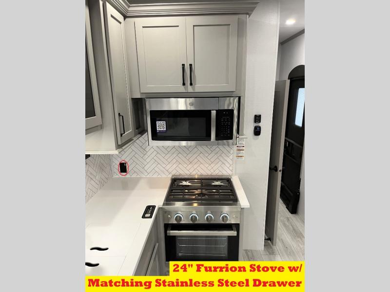 Live the high life with a Keystone Montana High Country fifth wheel! You'll have all the luxury you need with these units. They come with a MaxTurn™ front cap with KeyShield™ automotive-grade paint, a fully walkable roof with Alpha seamless TPO membrane system, and an insulated underbelly with forced hot air and electric tank heaters. The MORryde CRE3000 suspension with wet bolts helps provide a smooth tow, and the Ground Control® four-point electric auto-leveling with hitch memory will make set-up quite easy. The interior is elegantly appointed with the Thomas Payne Collection furniture, hardwood decorative slide-out fascia, Beauflor® vinyl throughout, accent crown molding, and premium solid surface kitchen countertops.