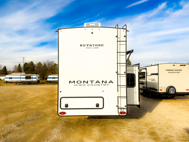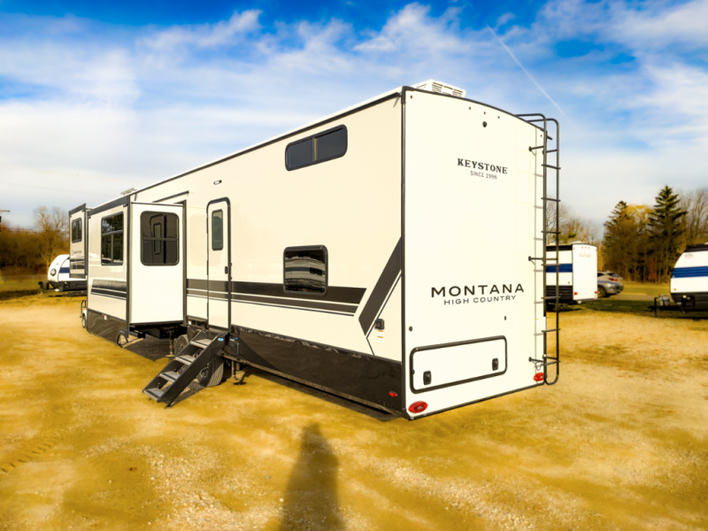 2026 Keystone Montana High Country 377FL at Price Right RV. 42’5”, four slides, two full baths, loft, high-end features for Michigan families.