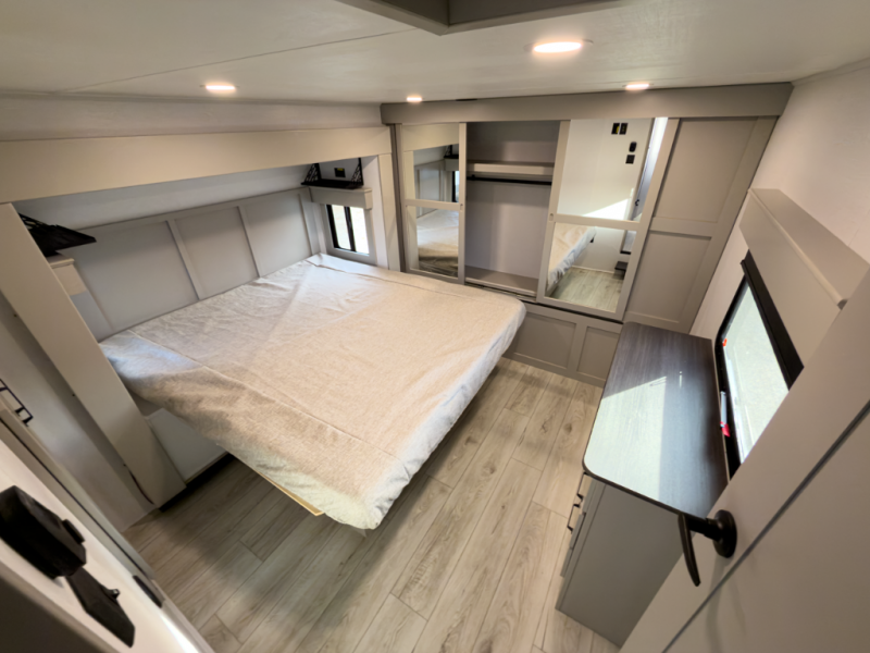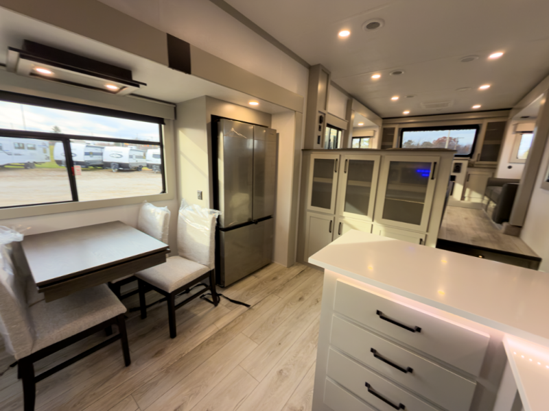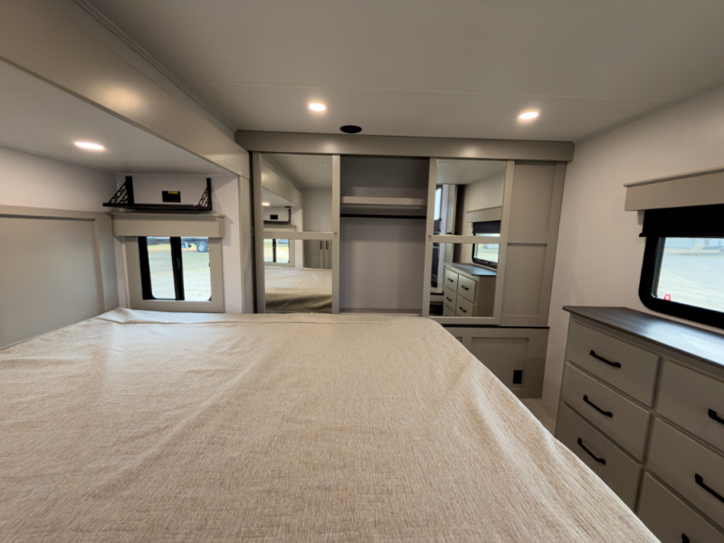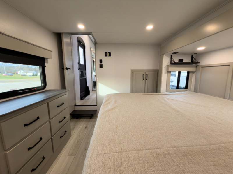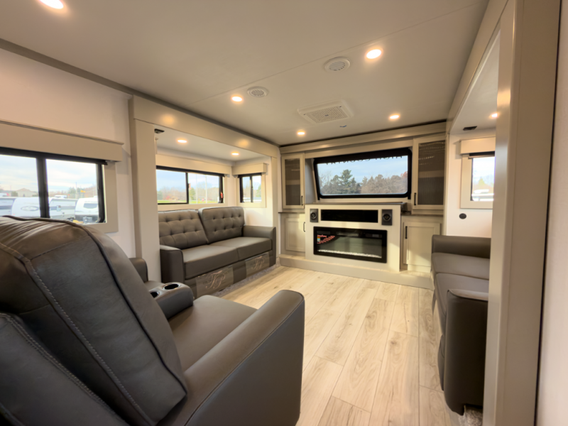 This fifth wheel brings premium finishes, smart layout design and build quality that meets Michigan seasons. Ideal for those who camp large, live comfortably, and want a rig that works year-round.