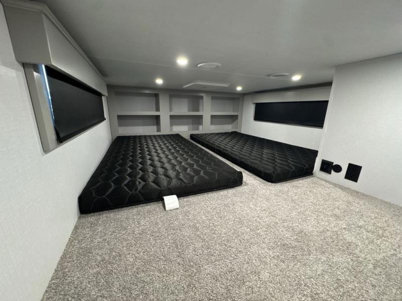 Include all of your favorite people on your next adventure in this Montana High Country fifth wheel! Not only is there a rear private bedroom with a king-size bed for you, but there is also a loft above with stairs that take you to the bunk mats. Now your kids will have their own space too. You can even host a few other travelers up front in the separate living room on the two hide-a-bed sofas. This area will be perfect for cozy sleeping because of the fireplace, and you can even watch a movie as you drift off to sleep because of the 50" LED TV too. The full bathroom has a 48" x 30" shower with seat, and the kitchen has a breakfast bar that you can sit at to eat your cereal each morning