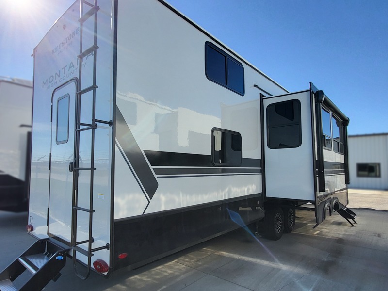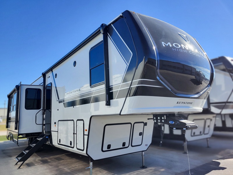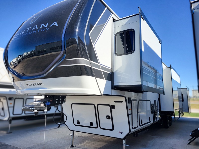 Live the high life with a Keystone Montana High Country fifth wheel! You'll have all the luxury you need with these units. They come with a MaxTurn™ front cap with KeyShield™ automotive-grade paint, a fully walkable roof with Alpha seamless TPO membrane system, and an insulated underbelly with forced hot air and electric tank heaters. The MORryde CRE3000 suspension with wet bolts helps provide a smooth tow, and the Ground Control® four-point electric auto-leveling with hitch memory will make set-up quite easy. The interior is elegantly appointed with the Thomas Payne Collection furniture, hardwood decorative slide-out fascia, Beauflor® vinyl throughout, accent crown molding, and premium solid surface kitchen countertops.