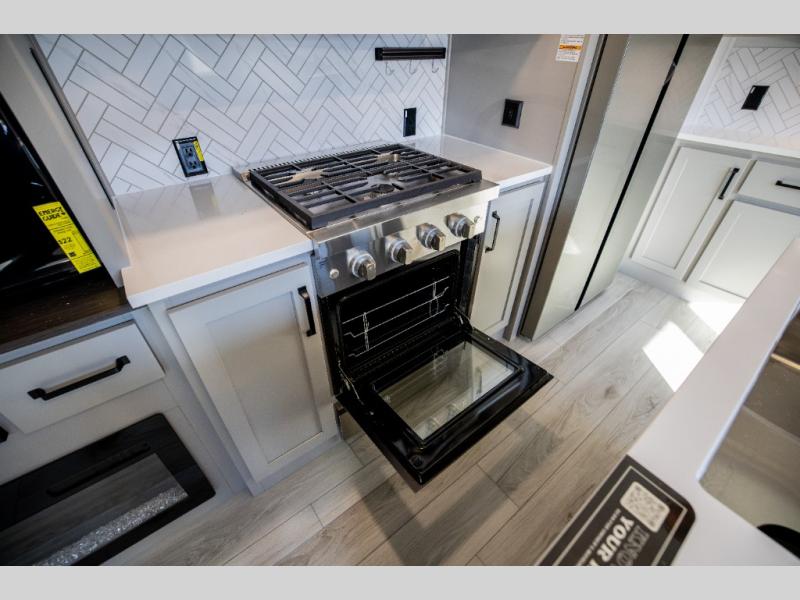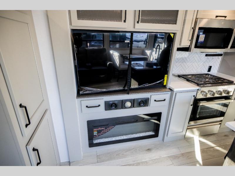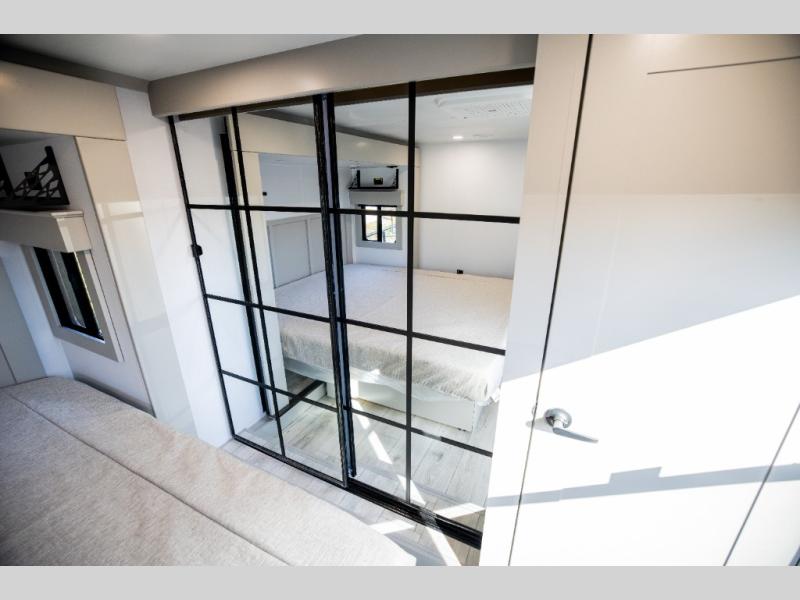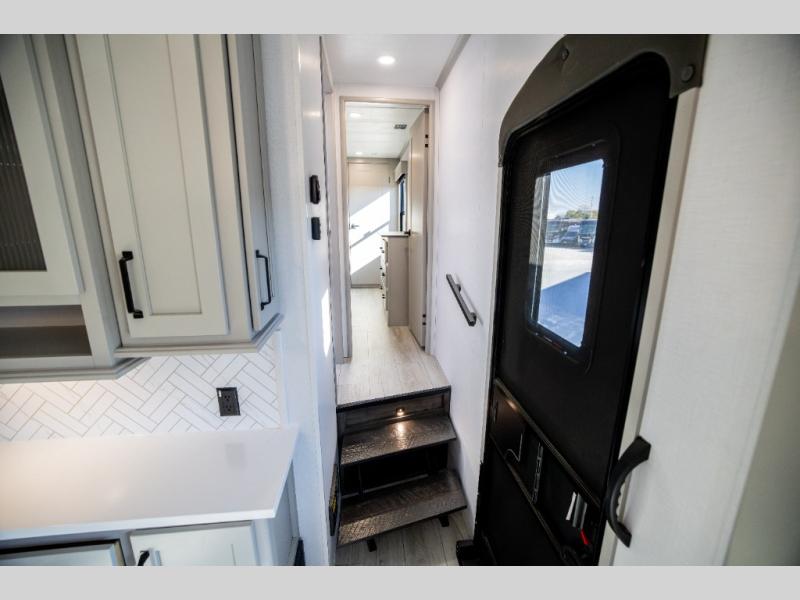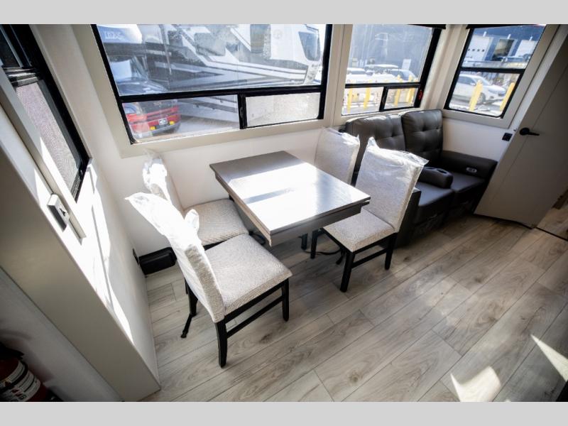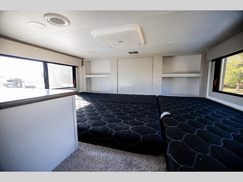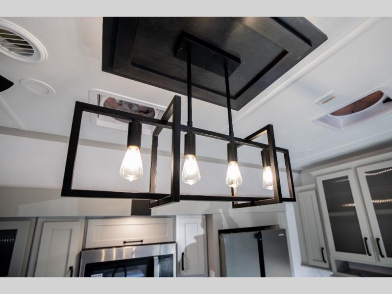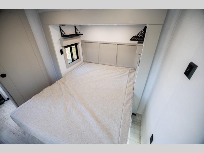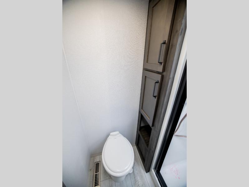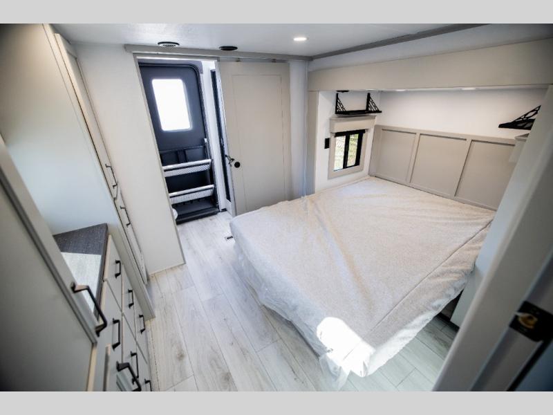 Two full bathrooms and two private bedrooms make this fifth wheel perfect for camping with friends and family. The front bedroom includes a king bed with a queen bed option, a large front wardrobe, plus stackable washer and dryer prep. The rear master bedroom has two closets plus a dresser and underbed storage, plus its own full bath with an exterior entry door for convenience. There is even a loft above the rear bedroom for even more sleeping space! Everyone can meet in the main living area/kitchen to relax on the power theater seat as the chef cooks dinner, and you can watch a show on the Smart HDTV to pass the time. The kitchen island will provide more counter space, along with the hutch that includes overhead cabinets as well. Don't let this luxury fifth wheel slip away!