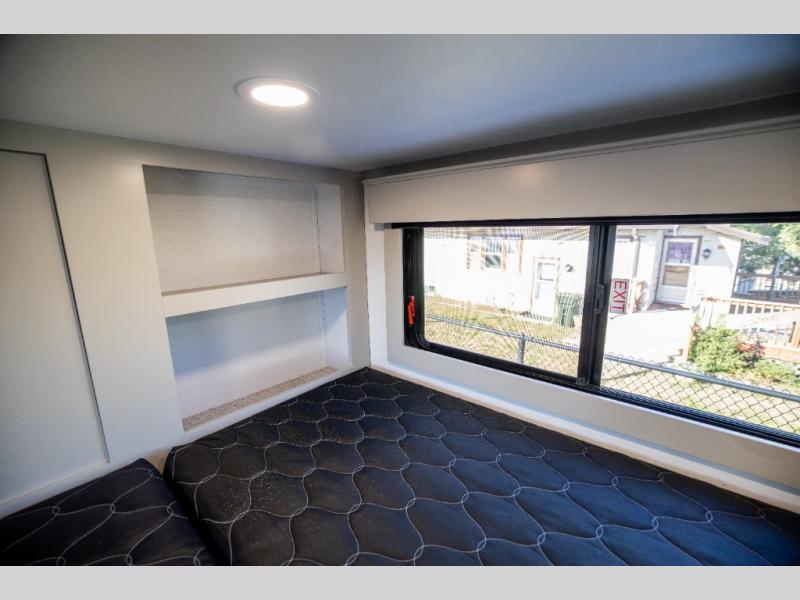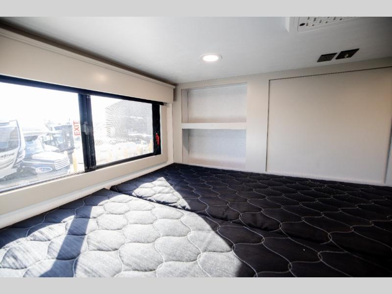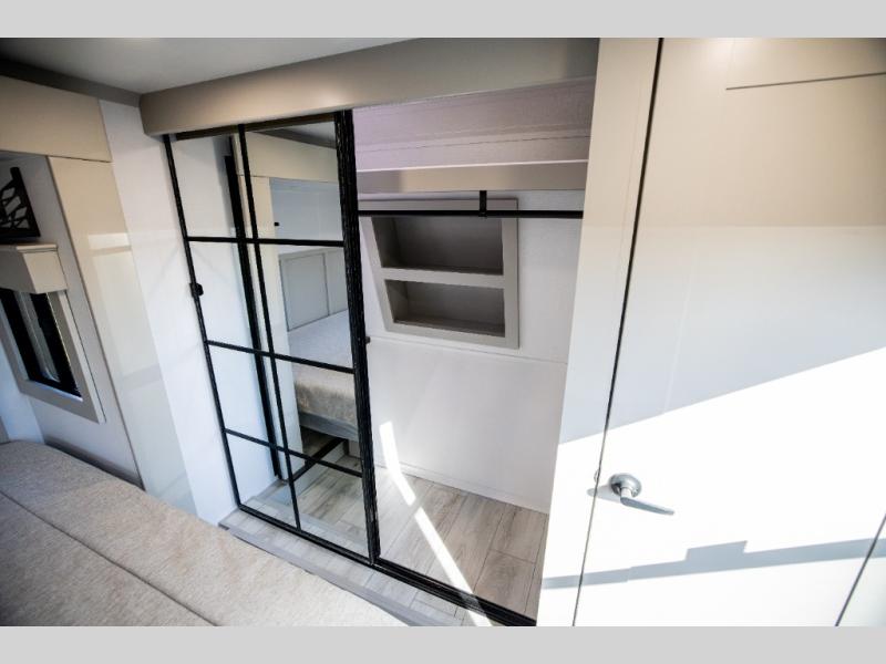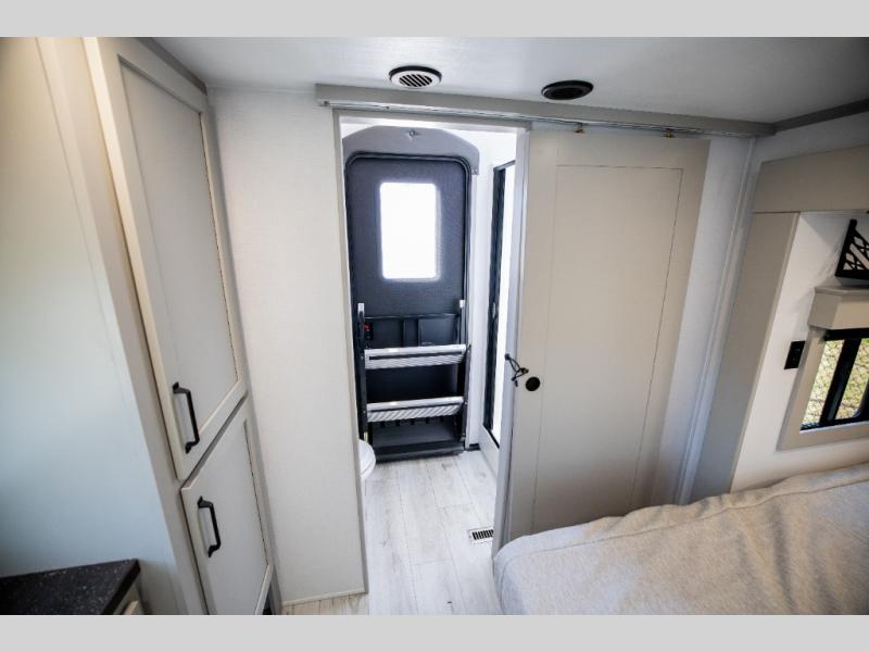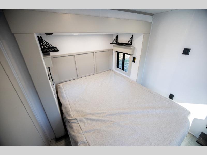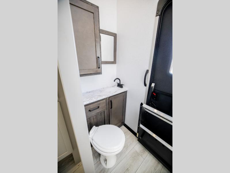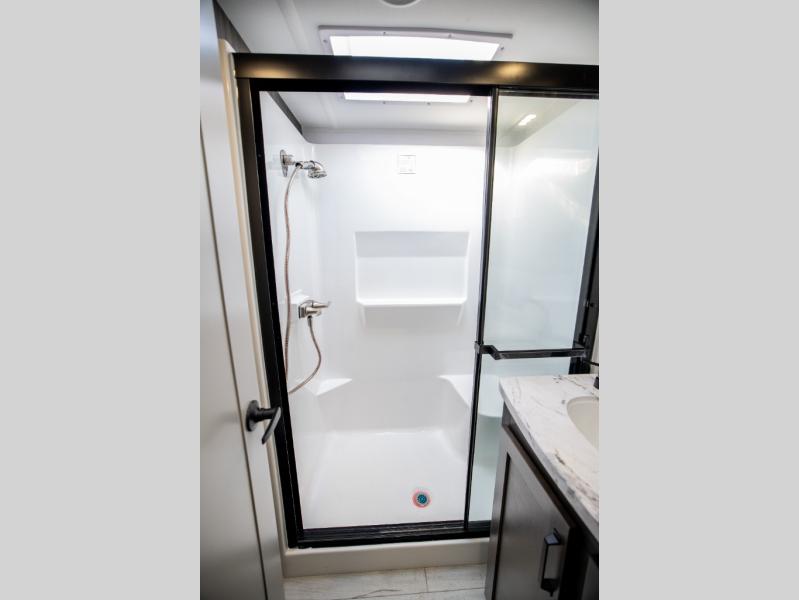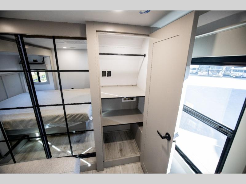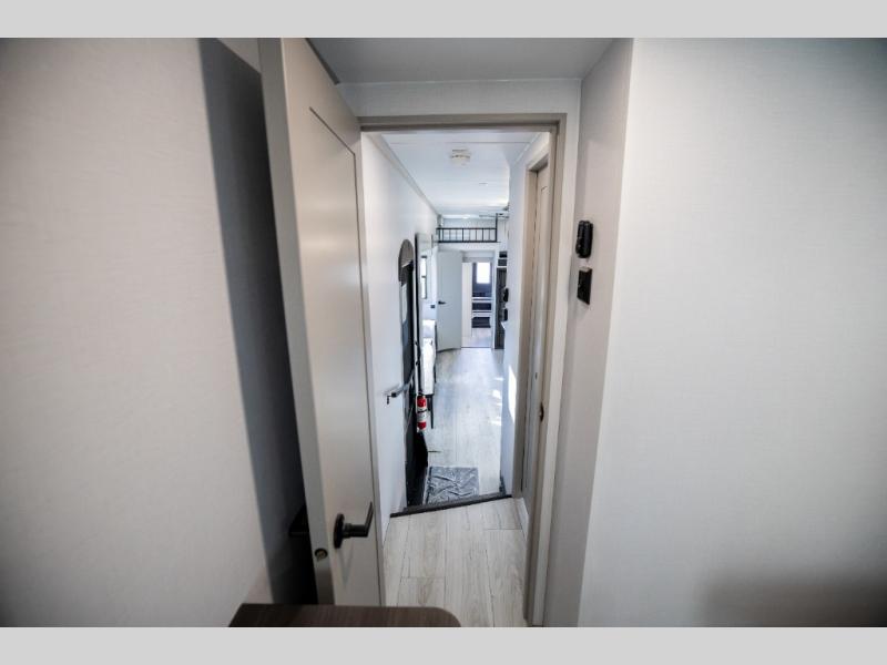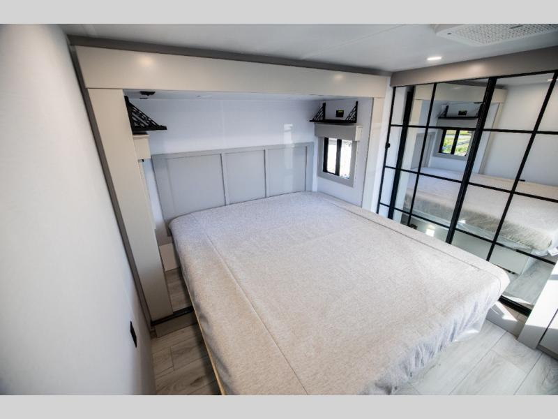 Two full bathrooms and two private bedrooms make this fifth wheel perfect for camping with friends and family. The front bedroom includes a king bed with a queen bed option, a large front wardrobe, plus stackable washer and dryer prep. The rear master bedroom has two closets plus a dresser and underbed storage, plus its own full bath with an exterior entry door for convenience. There is even a loft above the rear bedroom for even more sleeping space! Everyone can meet in the main living area/kitchen to relax on the power theater seat as the chef cooks dinner, and you can watch a show on the Smart HDTV to pass the time. The kitchen island will provide more counter space, along with the hutch that includes overhead cabinets as well. Don't let this luxury fifth wheel slip away!