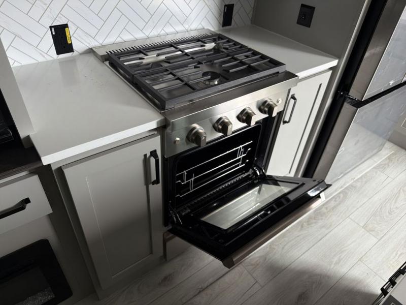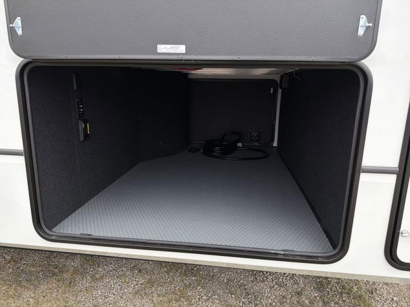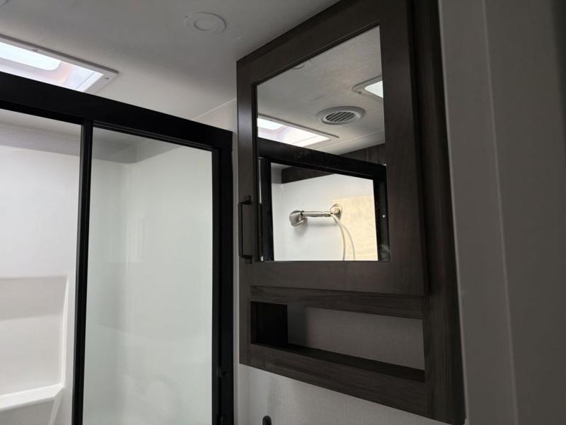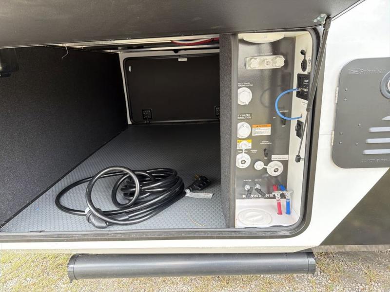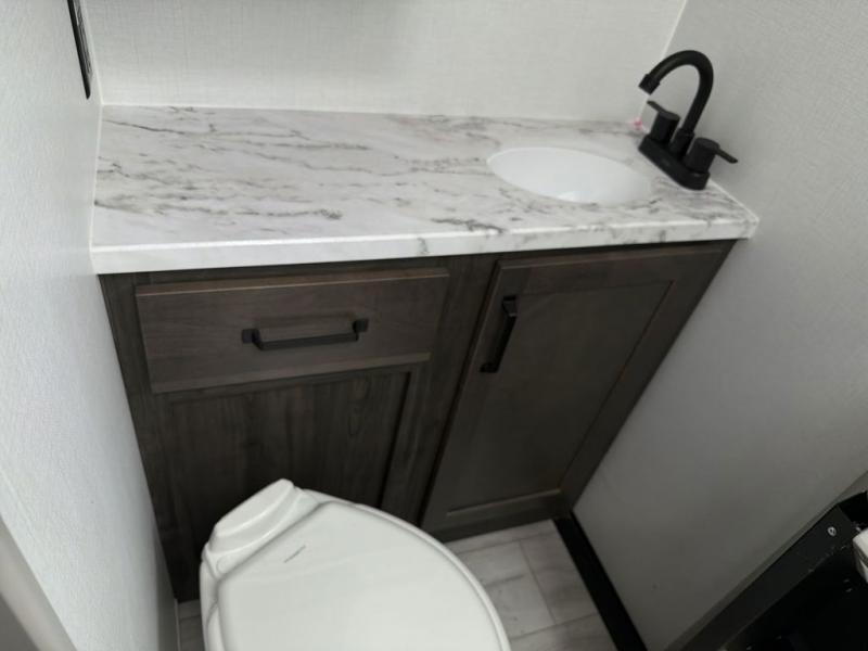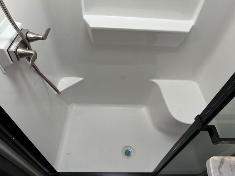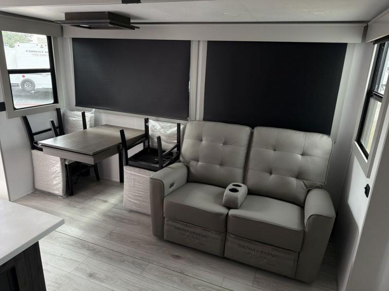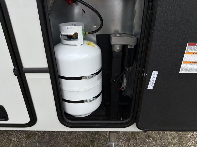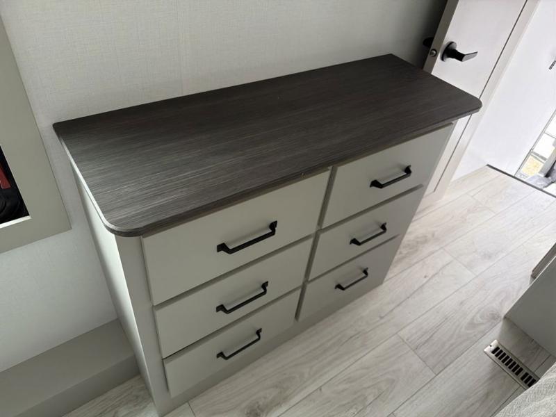 Two full bathrooms and two private bedrooms make this fifth wheel perfect for camping with friends and family. The front bedroom includes a king bed with a queen bed option, a large front wardrobe, plus stackable washer and dryer prep. The rear master bedroom has two closets plus a dresser and underbed storage, plus its own full bath with an exterior entry door for convenience. There is even a loft above the rear bedroom for even more sleeping space! Everyone can meet in the main living area/kitchen to relax on the power theater seat as the chef cooks dinner, and you can watch a show on the Smart HDTV to pass the time. The kitchen island will provide more counter space, along with the hutch that includes overhead cabinets as well. Don't let this luxury fifth wheel slip away!