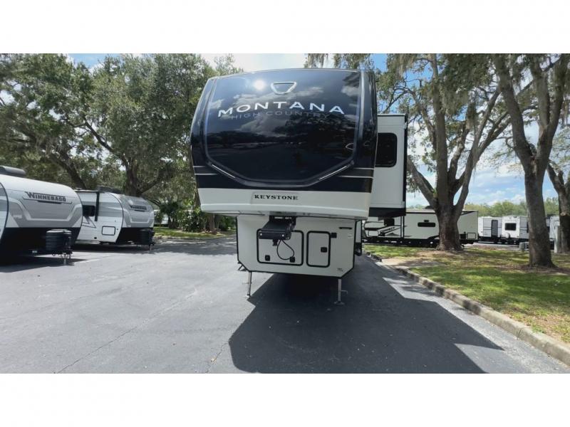 Live the high life with a Keystone Montana High Country fifth wheel! You'll have all the luxury you need with these units. They come with a MaxTurn™ front cap with KeyShield™ automotive-grade paint, a fully walkable roof with Alpha seamless TPO membrane system, and an insulated underbelly with forced hot air and electric tank heaters. The MORryde CRE3000 suspension with wet bolts helps provide a smooth tow, and the Ground Control® four-point electric auto-leveling with hitch memory will make set-up quite easy. The interior is elegantly appointed with the Thomas Payne Collection furniture, hardwood decorative slide-out fascia, Beauflor® vinyl throughout, accent crown molding, and premium solid surface kitchen countertops.