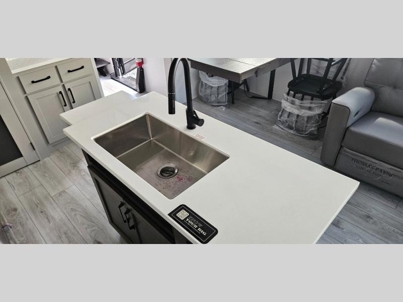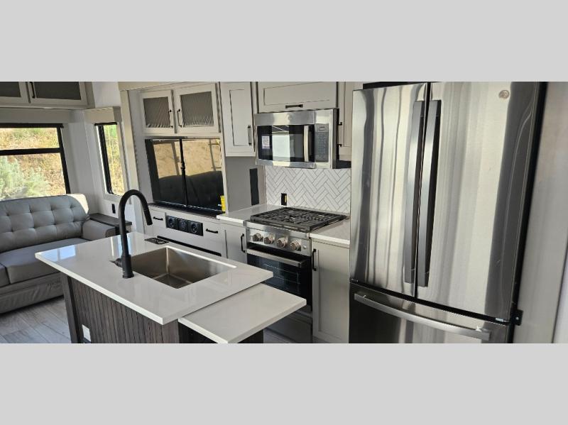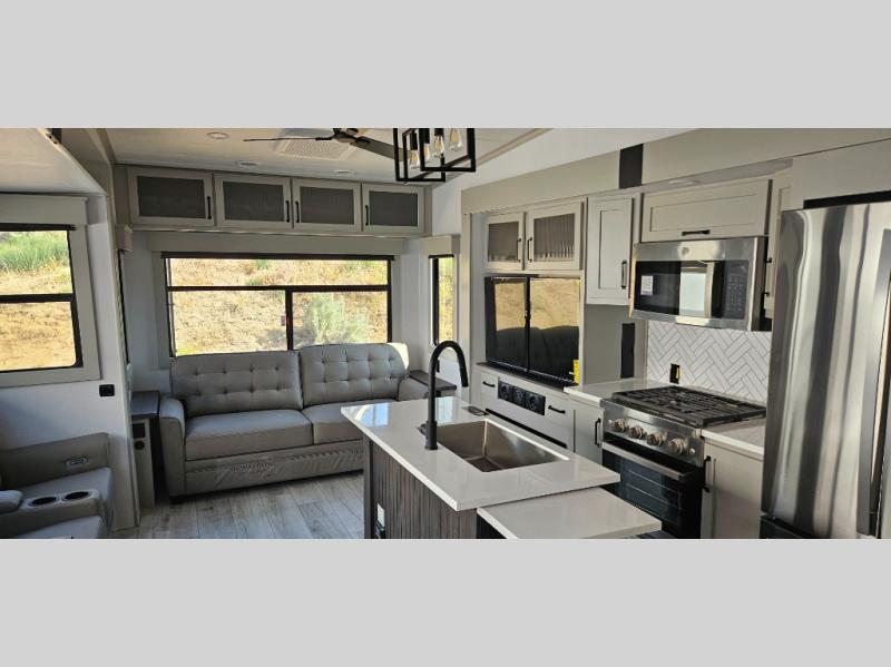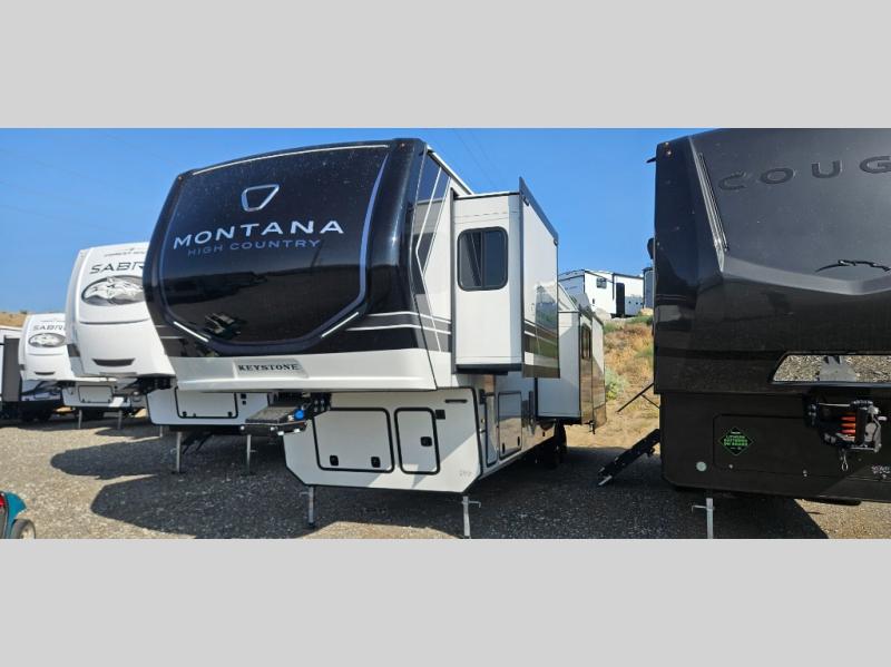 Live the high life with a Keystone Montana High Country fifth wheel! You'll have all the luxury you need with these units. They come with a MaxTurn™ front cap with KeyShield™ automotive-grade paint, a fully walkable roof with Alpha seamless TPO membrane system, and an insulated underbelly with forced hot air and electric tank heaters. The MORryde CRE3000 suspension with wet bolts helps provide a smooth tow, and the Ground Control® four-point electric auto-leveling with hitch memory will make set-up quite easy. The interior is elegantly appointed with the Thomas Payne Collection furniture, hardwood decorative slide-out fascia, Beauflor® vinyl throughout, accent crown molding, and premium solid surface kitchen countertops.