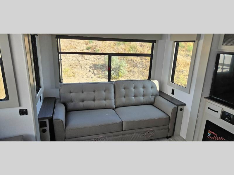What I liked most: Love the floor plan. Perfect for us. However if you want to camp in any kind of warm weather forget it. Air conditioning in living area plain does not work. If 90 outside its 90 inside. Keystone tells you to camp under a tree!! Trim in bedroom and slides fell off. Ice maker still doesn’t work. Poor quality workmanship. Camping world holds unit hostage to repair if you can get in touch with them at all. Then charged us $$$$ for warranty work on a camper we’ve had 6 months!!! Don’t deal with Keystone or Camping World it’s not worth the hassle.
