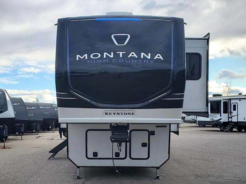 Live the high life with a Keystone Montana High Country fifth wheel! You'll have all the luxury you need with these units. They come with a MaxTurn™ front cap with KeyShield™ automotive-grade paint, a fully walkable roof with Alpha seamless TPO membrane system, and an insulated underbelly with forced hot air and electric tank heaters. The MORryde CRE3000 suspension with wet bolts helps provide a smooth tow, and the Ground Control® four-point electric auto-leveling with hitch memory will make set-up quite easy. The interior is elegantly appointed with the Thomas Payne Collection furniture, hardwood decorative slide-out fascia, Beauflor® vinyl throughout, accent crown molding, and premium solid surface kitchen countertops.