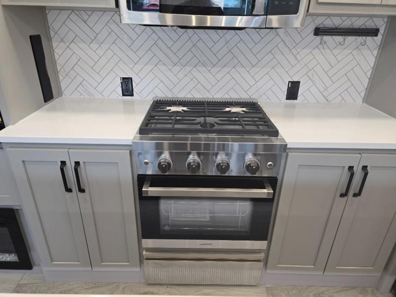 Live the high life with a Keystone Montana High Country fifth wheel! You'll have all the luxury you need with these units. They come with a MaxTurn™ front cap with KeyShield™ automotive-grade paint, a fully walkable roof with Alpha seamless TPO membrane system, and an insulated underbelly with forced hot air and electric tank heaters. The MORryde CRE3000 suspension with wet bolts helps provide a smooth tow, and the Ground Control® four-point electric auto-leveling with hitch memory will make set-up quite easy. The interior is elegantly appointed with the Thomas Payne Collection furniture, hardwood decorative slide-out fascia, Beauflor® vinyl throughout, accent crown molding, and premium solid surface kitchen countertops.