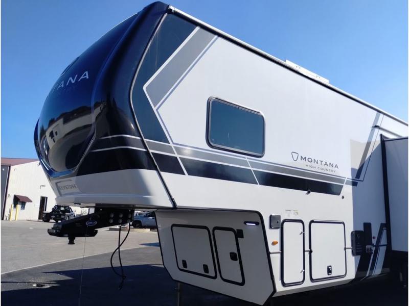 Live the high life with a Keystone Montana High Country fifth wheel! You'll have all the luxury you need with these units. They come with a MaxTurn™ front cap with KeyShield™ automotive-grade paint, a fully walkable roof with Alpha seamless TPO membrane system, and an insulated underbelly with forced hot air and electric tank heaters. The MORryde CRE3000 suspension with wet bolts helps provide a smooth tow, and the Ground Control® four-point electric auto-leveling with hitch memory will make set-up quite easy. The interior is elegantly appointed with the Thomas Payne Collection furniture, hardwood decorative slide-out fascia, Beauflor® vinyl throughout, accent crown molding, and premium solid surface kitchen countertops.