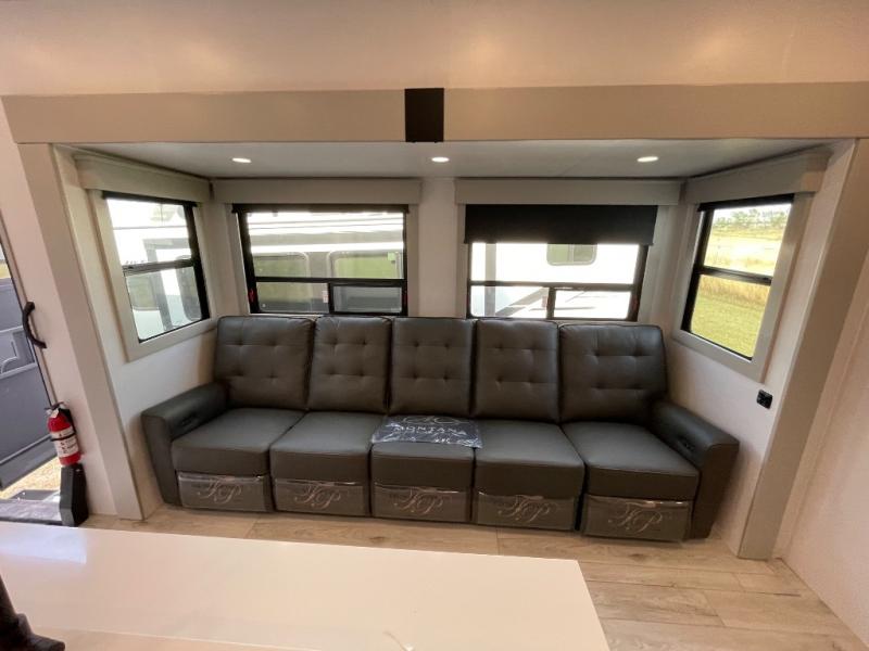 Live the high life with a Keystone Montana High Country fifth wheel! You'll have all the luxury you need with these units. They come with a MaxTurn™ front cap with KeyShield™ automotive-grade paint, a fully walkable roof with Alpha seamless TPO membrane system, and an insulated underbelly with forced hot air and electric tank heaters. The MORryde CRE3000 suspension with wet bolts helps provide a smooth tow, and the Ground Control® four-point electric auto-leveling with hitch memory will make set-up quite easy. The interior is elegantly appointed with the Thomas Payne Collection furniture, hardwood decorative slide-out fascia, Beauflor® vinyl throughout, accent crown molding, and premium solid surface kitchen countertops.