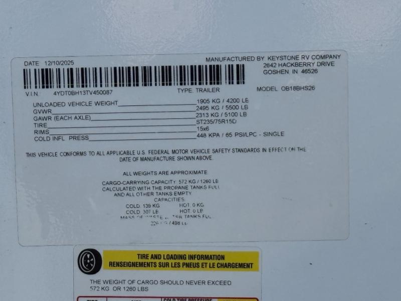 New 2026 Keystone RV Outback OBX 18BHS Travel Trailer