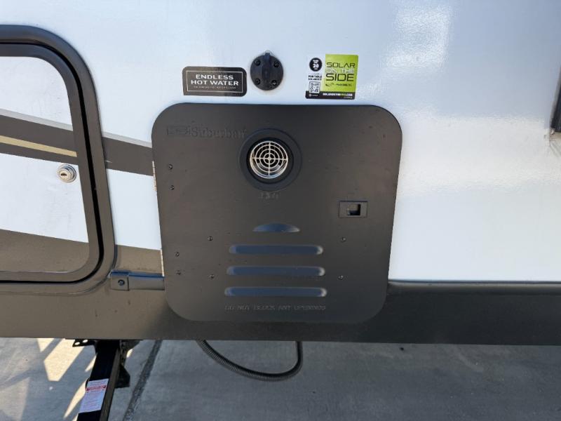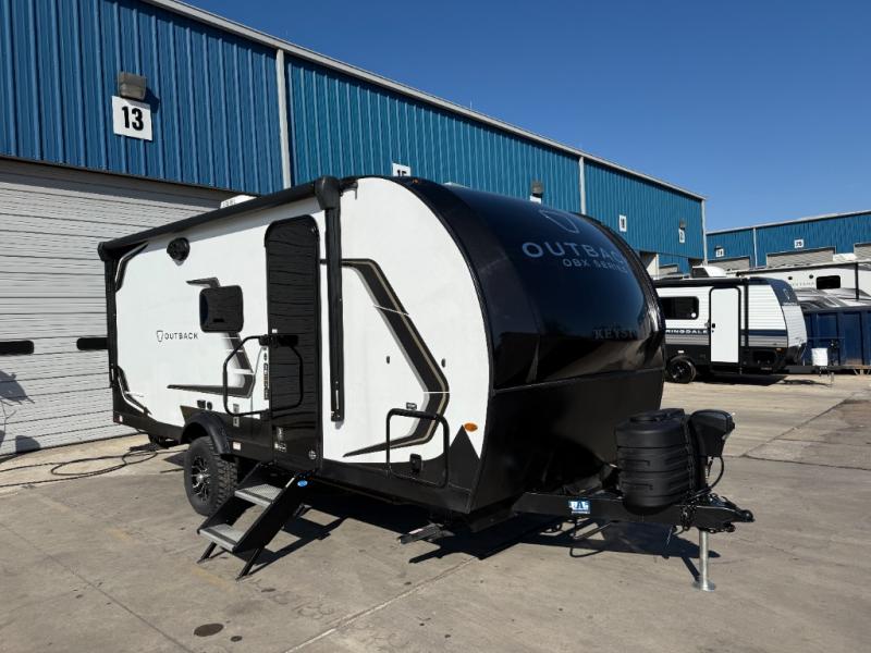 Built for maximum exploration and all types of camping, you are going to love the Outback OBX travel trailers. Each feature a pinched rolled laminated gel-coated fiberglass exterior, fully walkable 3/8" roof decking, plus a one-piece polypropylene heated and enclosed underbelly. There is also a power tongue jack outside, along with an outside shower, solar prep, and back-up camera prep. Inside, you'll enjoy hardwood cabinetry, fiber-glass backed linoleum flooring with no carpet, pressed kitchen countertops, and many more comforts. The on demand hot water heater will provide even more comfort, along with the 18k BTU A/C with a variable speed compressor.