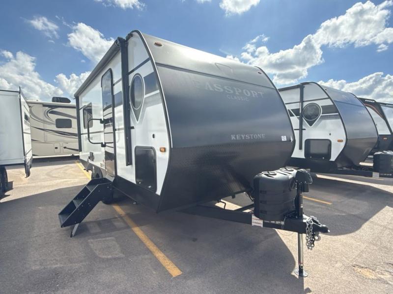 Comfort is found all throughout each one of these Keystone RV Passport Classic travel trailers! They are built with a one-piece polypropylene underbelly to protect your unit's vitals, and a seamless, laminated and gel-coated filon exterior that is sure to turn heads at the campsite. A fully walkable roof makes it easy to access when needed, and the leaf spring straight axles help provide smooth towing. The residential durable Beauflor vinyl flooring throughout and the seamless kitchen countertops will be easy to clean, and you can stay cool on a hot summer day with the A/C unit. Come find the Passport Classic that fits your needs best!