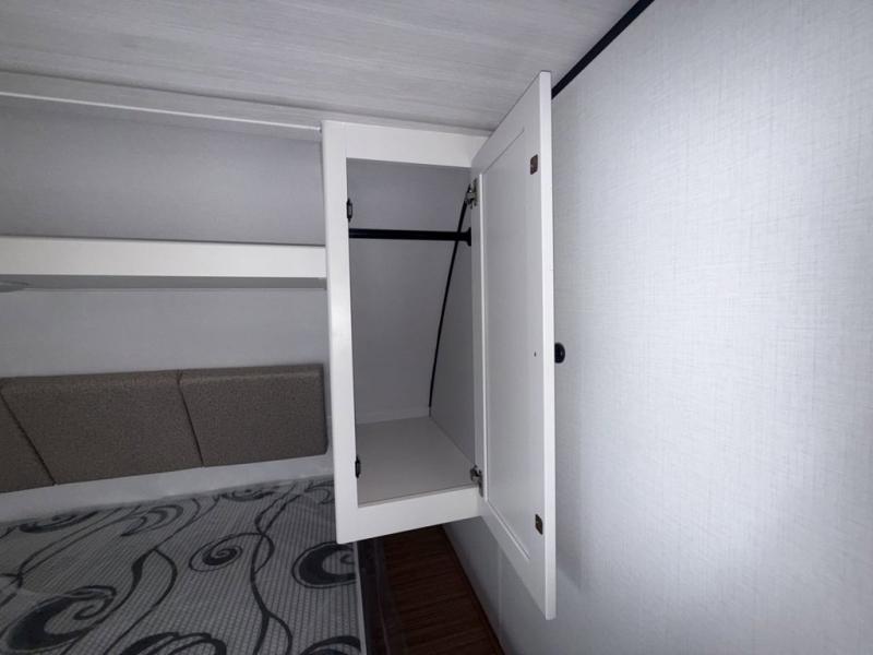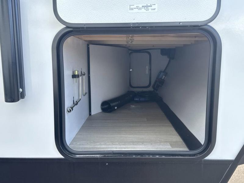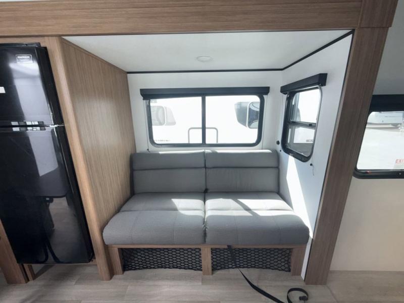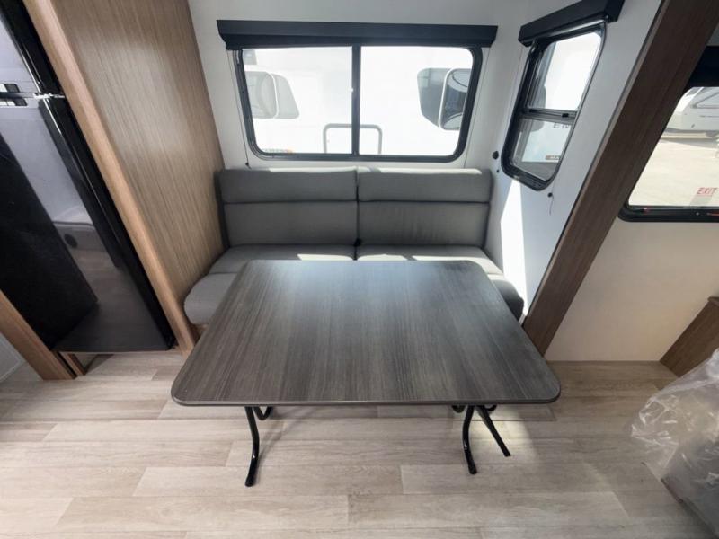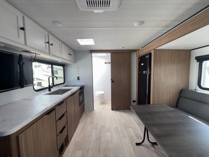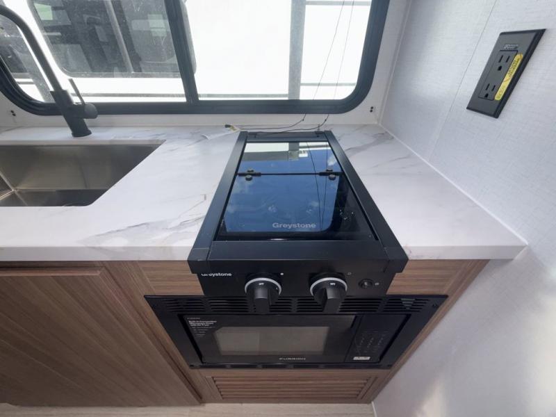 This rear bath, dual axle travel trailer will be perfect for trips to the campground. When you arrive at your site, you can unload the pass-through storage and put out the 14' awning for some shade. The two burner cooktop and microwave oven inside will let you make lunch, and there is a jack knife sofa slide where you can relax on. When it's time to call it a night, you can freshen up in the full rear bath before crashing on the front queen bed!