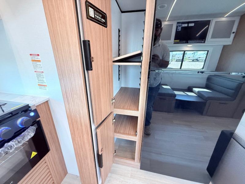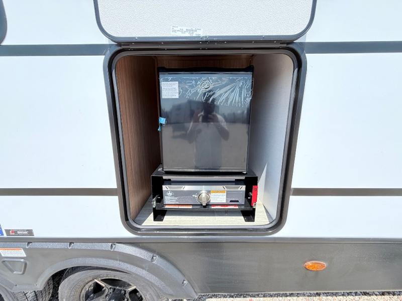 Are you looking to upgrade from a tent to a travel trailer? This dual axle unit may be the one! Since there are dual entry doors, you can enter in through the front master bedroom with a queen bed or the rear kitchen with ample counter space. Your crew can relax on the tri-fold sofa, play a game at the do-more dinette, or visit outdoors under the 19' awning. There is also an outdoor kitchen here for a sunrise breakfast! The walk-thru bath is easily accessible for everyone to use, and you'll find plenty of storage space throughout, including a large pantry, overhead compartments, and dual bedroom wardrobes and nightstands.