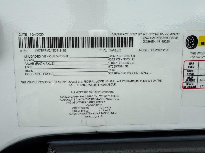 New 2026 Keystone RV Passport 2600FK Travel Trailer