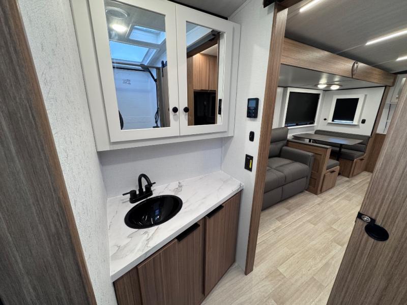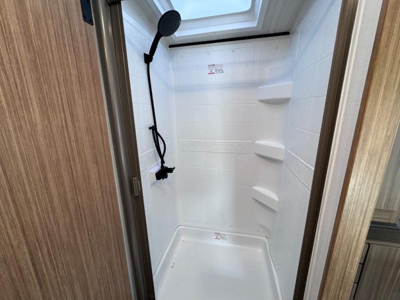 Each one of these Keystone RV Passport travel trailers offer grand style and multi-functional features! They have best-in-class storage for big things like paddle boards and small things like sleeping bags. There's no need for cordless drills and bending over to put the jacks down, simply push a button and the power stabilizer jacks do the rest. The heated and enclosed underbelly helps protect your unit's vitals in different weather conditions. Exclusive to Keystone is the Beauflor® vinyl flooring which is more resilient, stronger and lighter than the traditional laminated wood construction, plus it resists water and water damage. Inside, you'll find residential durable Cedar frost interior decor, LED lights throughout, decorative bedspread, and a skylight for more natural light.