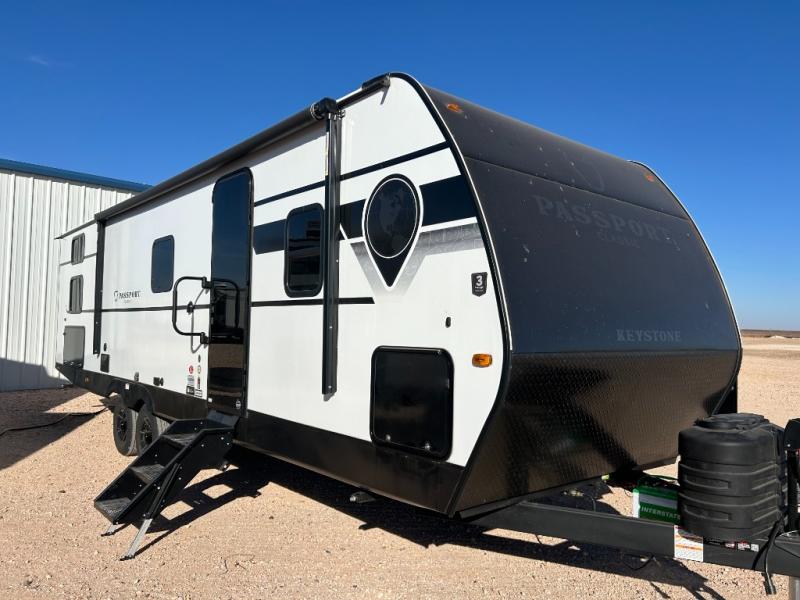 Comfort is found all throughout each one of these Keystone RV Passport Classic travel trailers! They are built with a one-piece polypropylene underbelly to protect your unit's vitals, and a seamless, laminated and gel-coated filon exterior that is sure to turn heads at the campsite. A fully walkable roof makes it easy to access when needed, and the leaf spring straight axles help provide smooth towing. The residential durable Beauflor vinyl flooring throughout and the seamless kitchen countertops will be easy to clean, and you can stay cool on a hot summer day with the A/C unit. Come find the Passport Classic that fits your needs best!