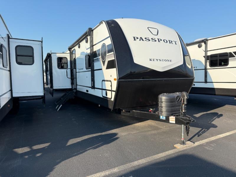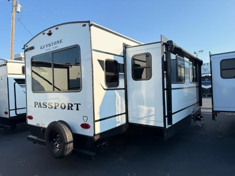 Each one of these Keystone RV Passport travel trailers offer grand style and multi-functional features! They have best-in-class storage for big things like paddle boards and small things like sleeping bags. There's no need for cordless drills and bending over to put the jacks down, simply push a button and the power stabilizer jacks do the rest. The one piece polypropylene underbelly and extended season camping package helps protect your unit's vitals in different weather conditions. Exclusive to Keystone is the Tru-fit slide construction and the Hyper Deck flooring which is more resilient, stronger and lighter than the traditional laminated wood construction, plus it resists water and water damage. Inside, you'll find residential durable Beauflor vinyl flooring, deluxe night shades, bedside outlets/USB ports, and a bath skylight for more natural light and additional head room.