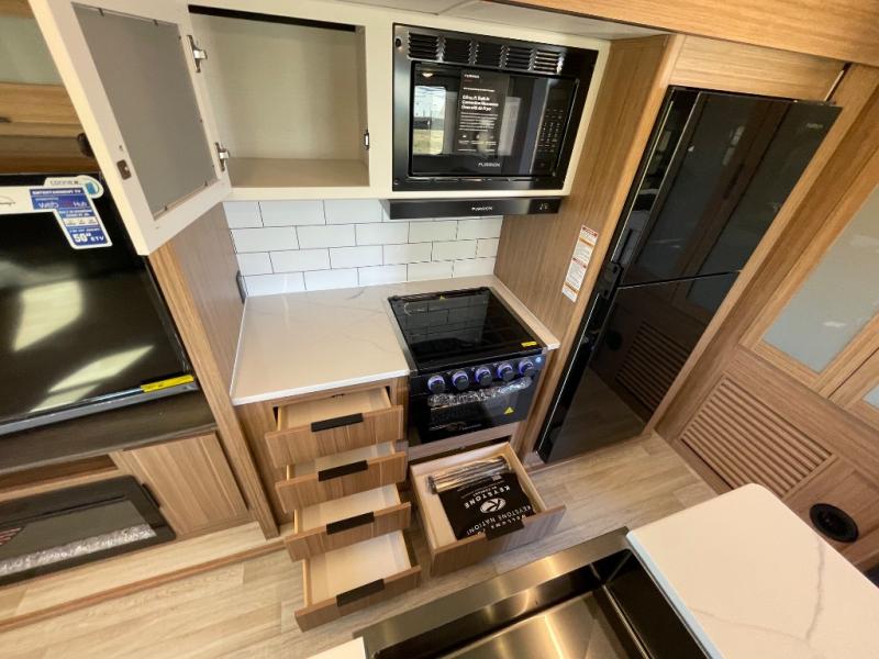 Each one of these Keystone RV Passport travel trailers offer grand style and multi-functional features! They have best-in-class storage for big things like paddle boards and small things like sleeping bags. There's no need for cordless drills and bending over to put the jacks down, simply push a button and the power stabilizer jacks do the rest. The one piece polypropylene underbelly and extended season camping package helps protect your unit's vitals in different weather conditions. Exclusive to Keystone is the Tru-fit slide construction and the Hyper Deck flooring which is more resilient, stronger and lighter than the traditional laminated wood construction, plus it resists water and water damage. Inside, you'll find residential durable Beauflor vinyl flooring, deluxe night shades, bedside outlets/USB ports, and a bath skylight for more natural light and additional head room.