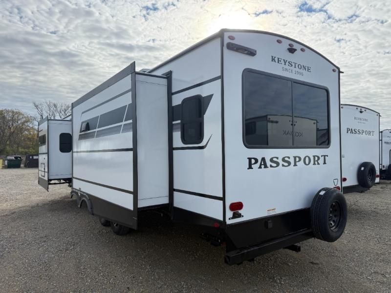 Each one of these Keystone RV Passport travel trailers offer grand style and multi-functional features! They have best-in-class storage for big things like paddle boards and small things like sleeping bags. There's no need for cordless drills and bending over to put the jacks down, simply push a button and the power stabilizer jacks do the rest. The one piece polypropylene underbelly and extended season camping package helps protect your unit's vitals in different weather conditions. Exclusive to Keystone is the Tru-fit slide construction and the Hyper Deck flooring which is more resilient, stronger and lighter than the traditional laminated wood construction, plus it resists water and water damage. Inside, you'll find residential durable Beauflor vinyl flooring, deluxe night shades, bedside outlets/USB ports, and a bath skylight for more natural light and additional head room.