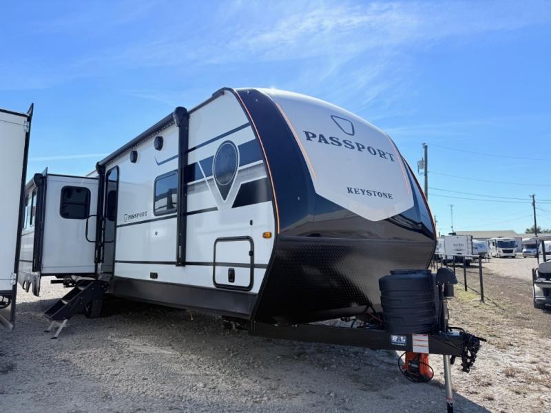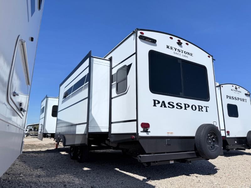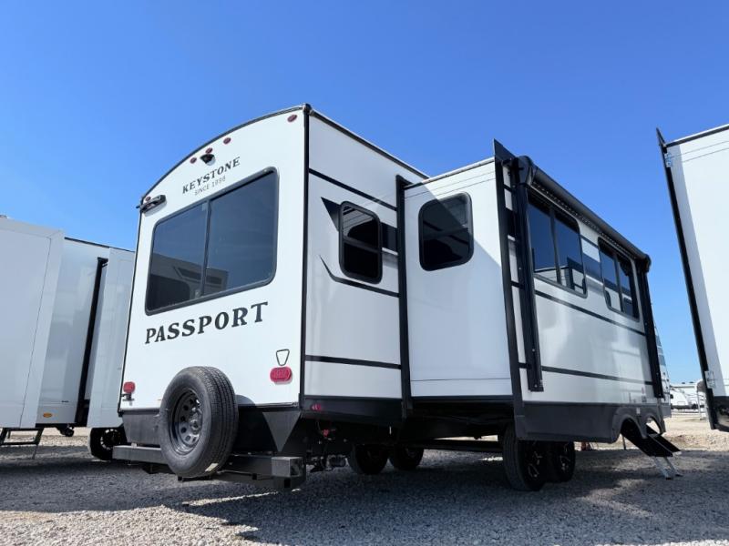 Each one of these Keystone RV Passport travel trailers offer grand style and multi-functional features! They have best-in-class storage for big things like paddle boards and small things like sleeping bags. There's no need for cordless drills and bending over to put the jacks down, simply push a button and the power stabilizer jacks do the rest. The one piece polypropylene underbelly and extended season camping package helps protect your unit's vitals in different weather conditions. Exclusive to Keystone is the Tru-fit slide construction and the Hyper Deck flooring which is more resilient, stronger and lighter than the traditional laminated wood construction, plus it resists water and water damage. Inside, you'll find residential durable Beauflor vinyl flooring, deluxe night shades, bedside outlets/USB ports, and a bath skylight for more natural light and additional head room.