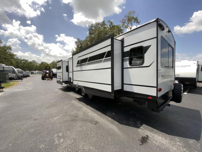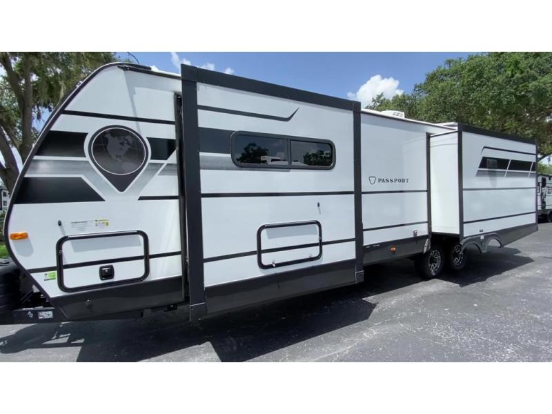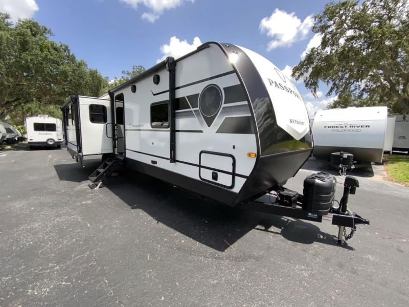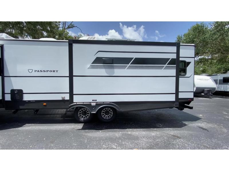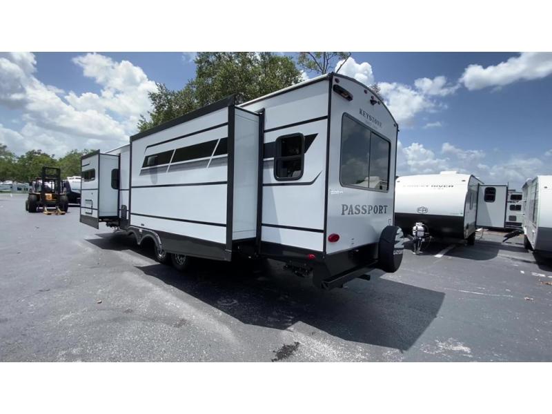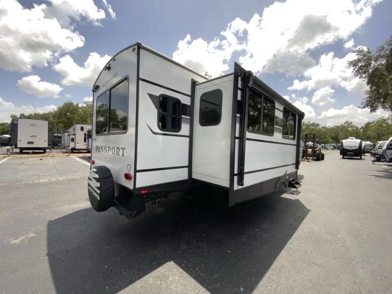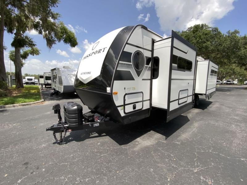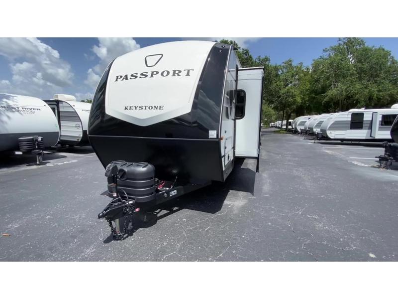 Each one of these Keystone RV Passport travel trailers offer grand style and multi-functional features! They have best-in-class storage for big things like paddle boards and small things like sleeping bags. There's no need for cordless drills and bending over to put the jacks down, simply push a button and the power stabilizer jacks do the rest. The one piece polypropylene underbelly and extended season camping package helps protect your unit's vitals in different weather conditions. Exclusive to Keystone is the Tru-fit slide construction and the Hyper Deck flooring which is more resilient, stronger and lighter than the traditional laminated wood construction, plus it resists water and water damage. Inside, you'll find residential durable Beauflor vinyl flooring, deluxe night shades, bedside outlets/USB ports, and a bath skylight for more natural light and additional head room.