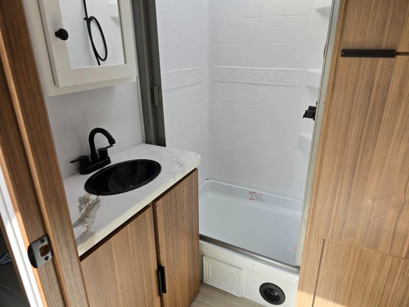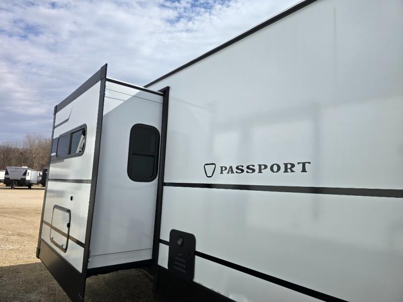 Each one of these Keystone RV Passport travel trailers offer grand style and multi-functional features! They have best-in-class storage for big things like paddle boards and small things like sleeping bags. There's no need for cordless drills and bending over to put the jacks down, simply push a button and the power stabilizer jacks do the rest. The heated and enclosed underbelly helps protect your unit's vitals in different weather conditions. Exclusive to Keystone is the Beauflor® vinyl flooring which is more resilient, stronger and lighter than the traditional laminated wood construction, plus it resists water and water damage. Inside, you'll find residential durable Cedar frost interior decor, LED lights throughout, decorative bedspread, and a skylight for more natural light.